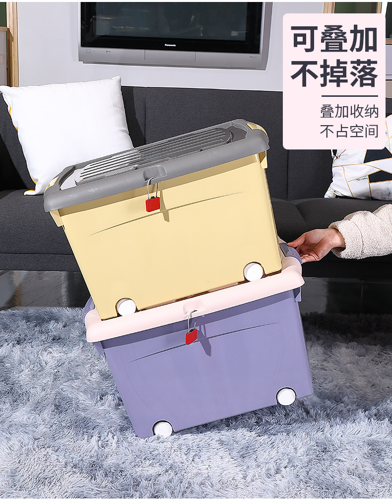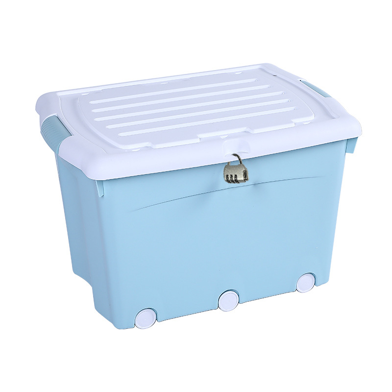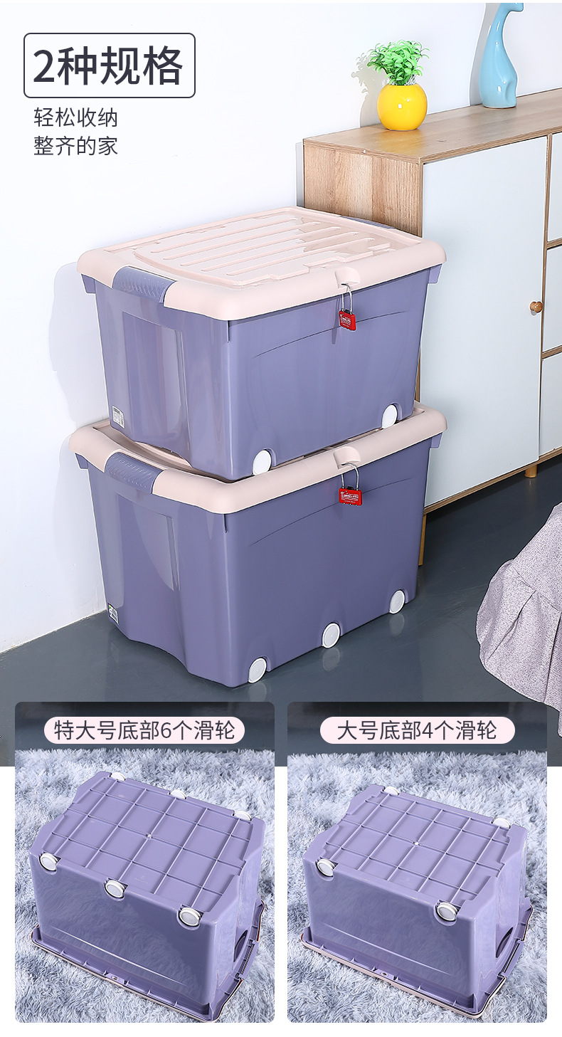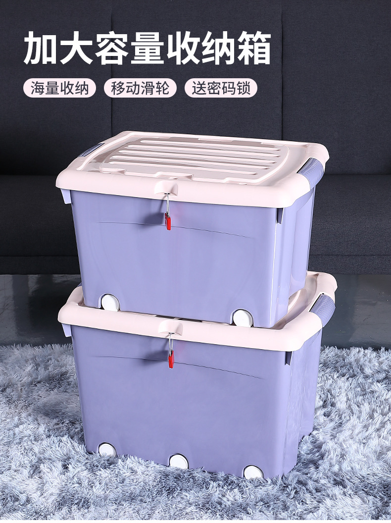 플라스틱 두꺼운 도르래 보관 상자 의류 보관 상자 옷장 정리 상자 학생 기숙사 잠금 보관 상자