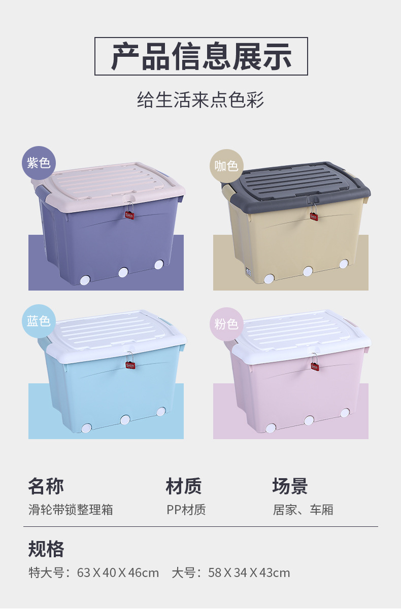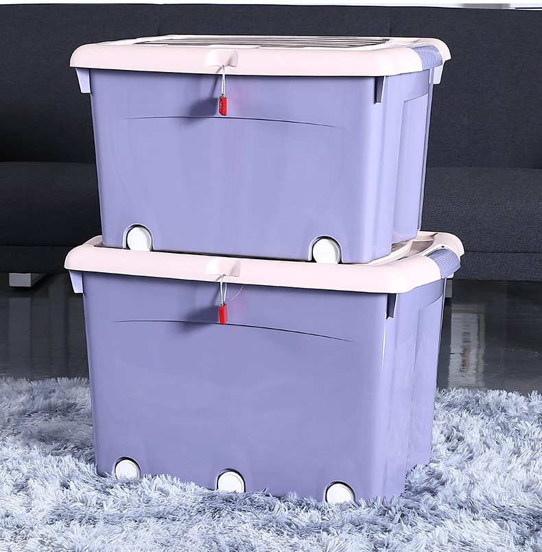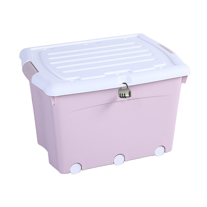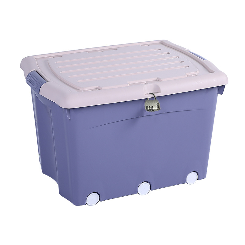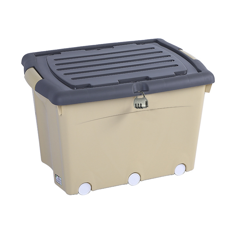 플라스틱 두꺼운 도르래 보관 상자 의류 보관 상자 옷장 정리 상자 학생 기숙사 잠금 보관 상자