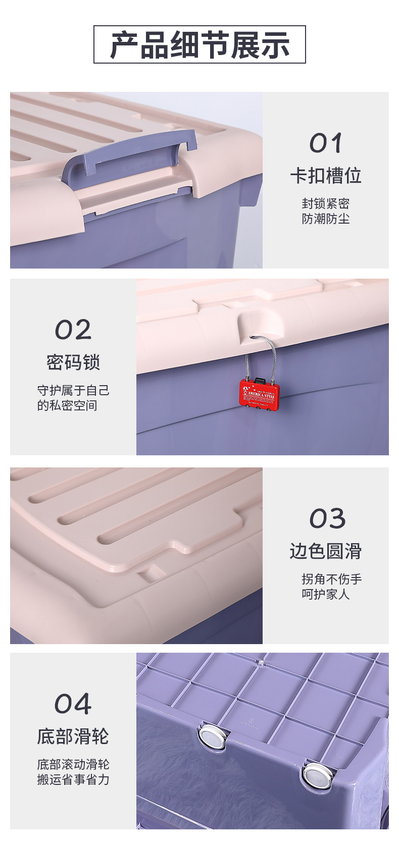 플라스틱 두꺼운 도르래 보관 상자 의류 보관 상자 옷장 정리 상자 학생 기숙사 잠금 보관 상자스토어 가기