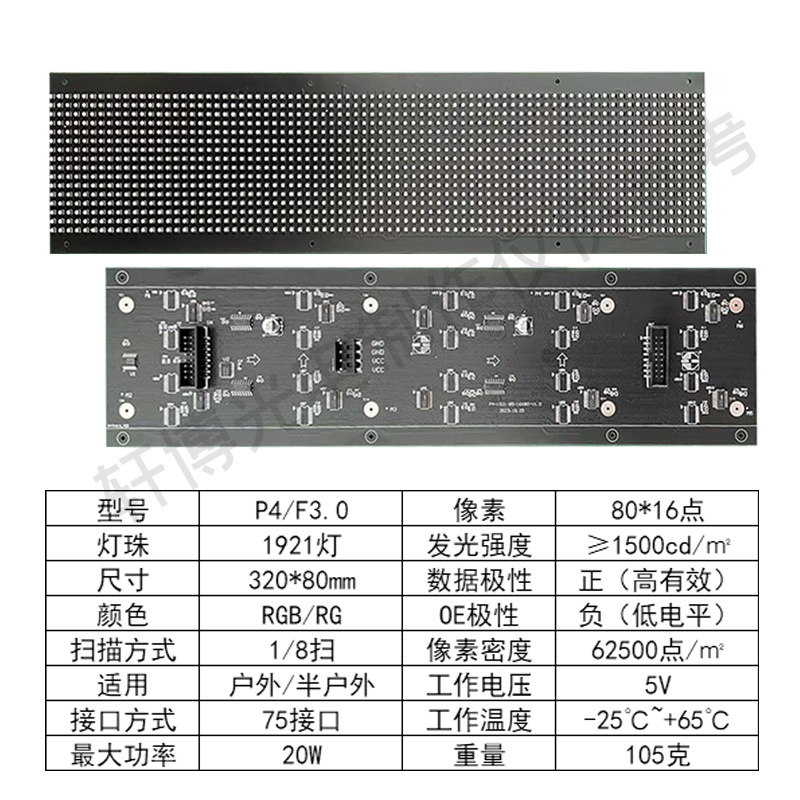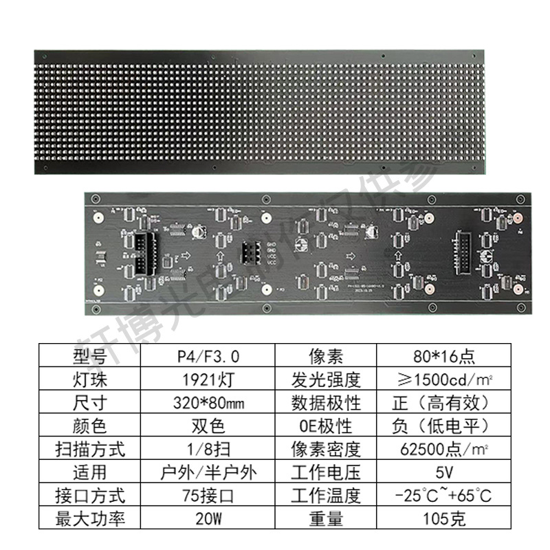 P4 다섯자형 풀컬러 단일/이중 색상 모듈 실외 3.0 모듈 LED 광고 창문 스크린 반판 풀컬러 표면 장착 유닛