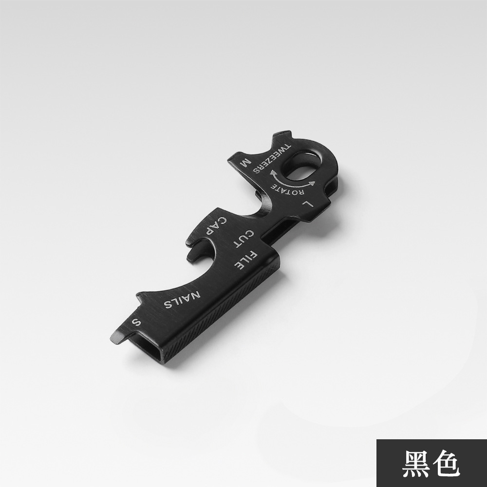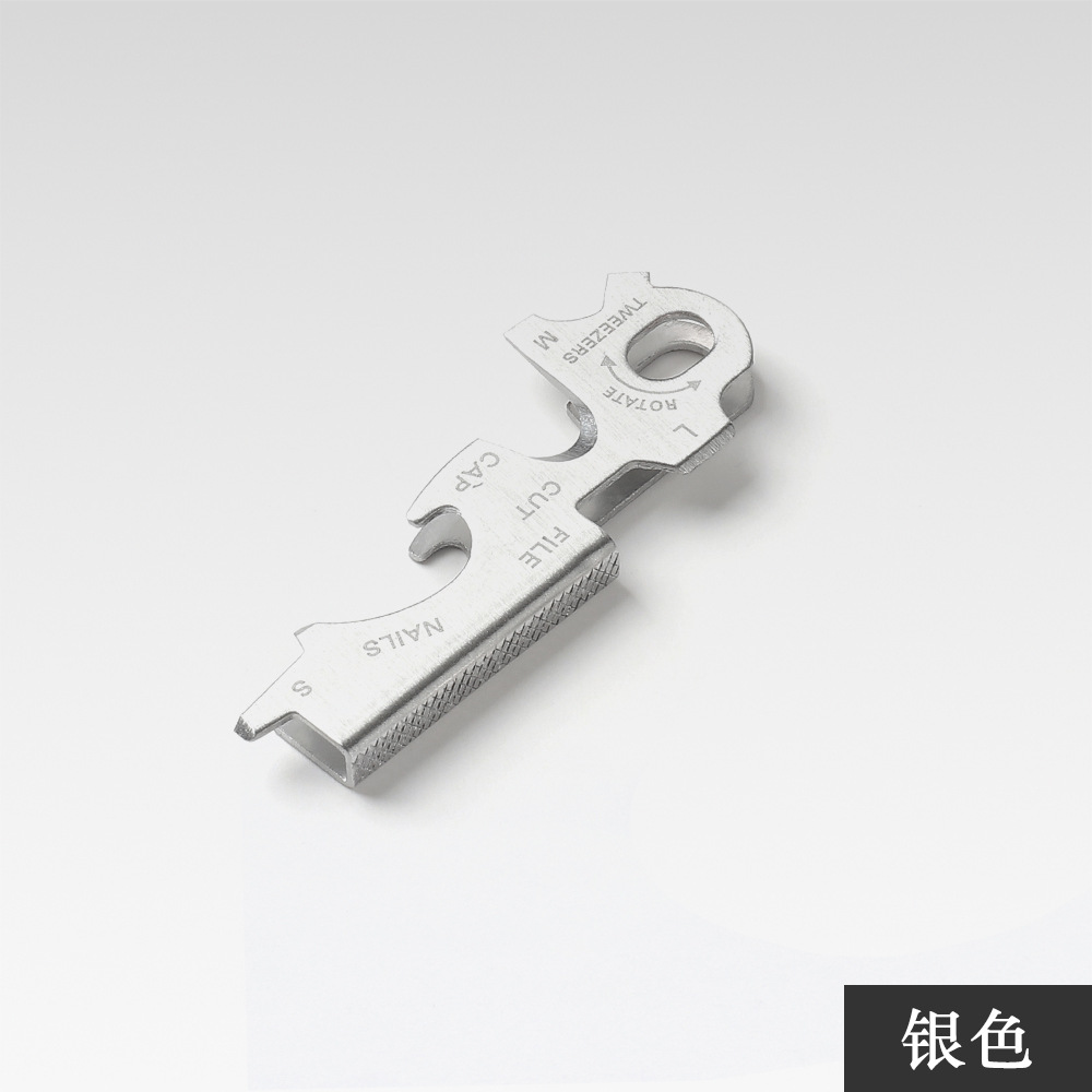 此款适合套进日常生活中任何标准门锁钥匙,携带并不累赘,产品仅是一把钥匙大小的尺寸。实际使用中增加钥匙夹的开瓶器的杠杆原理,并配置3个大小不同的螺丝刀,包括基本的眼镜小螺丝刀。还包括指甲锉,指甲清洁,螺纹铣刀,甚至一对镊子等。