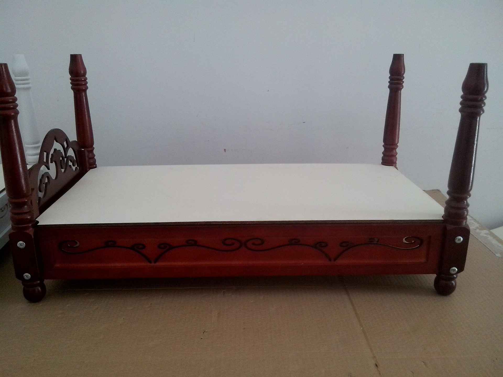 四根柱子是由松木或杨木雕刻而成,床板和床头是高密度板雕刻而成,其余框架是由桐木加工而成。