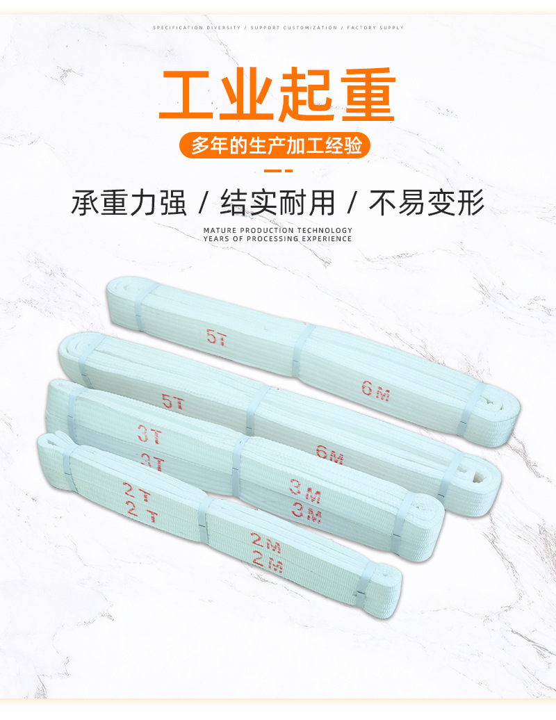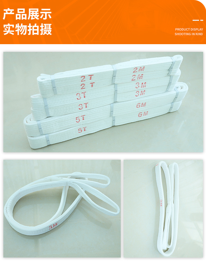 하이광 리프팅 스트랩, 흰색 플랫 슬링, 산성 처리된 리프팅 스트랩, 양쪽 끝에 버클이 있고 완벽한 사양스토어 가기