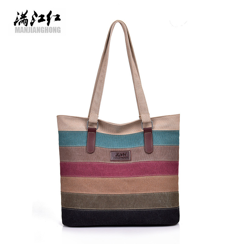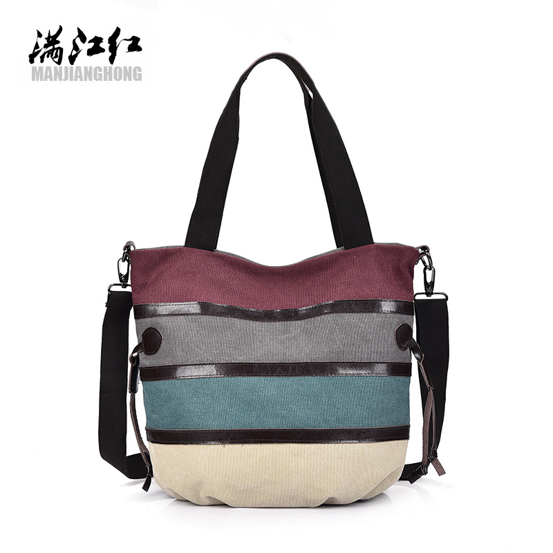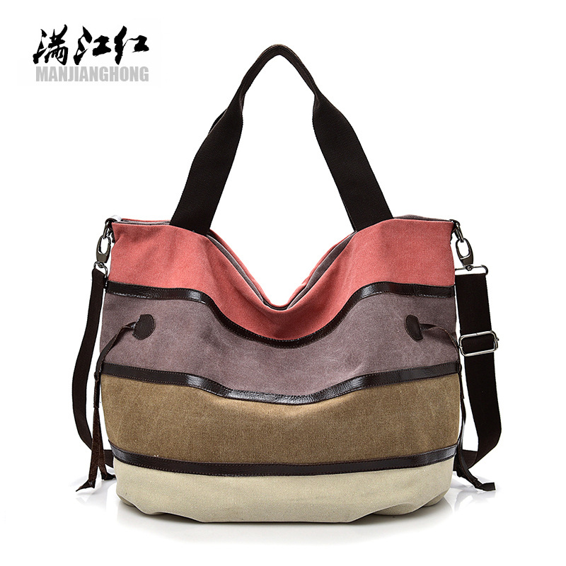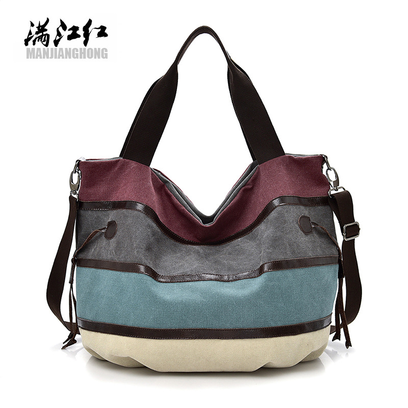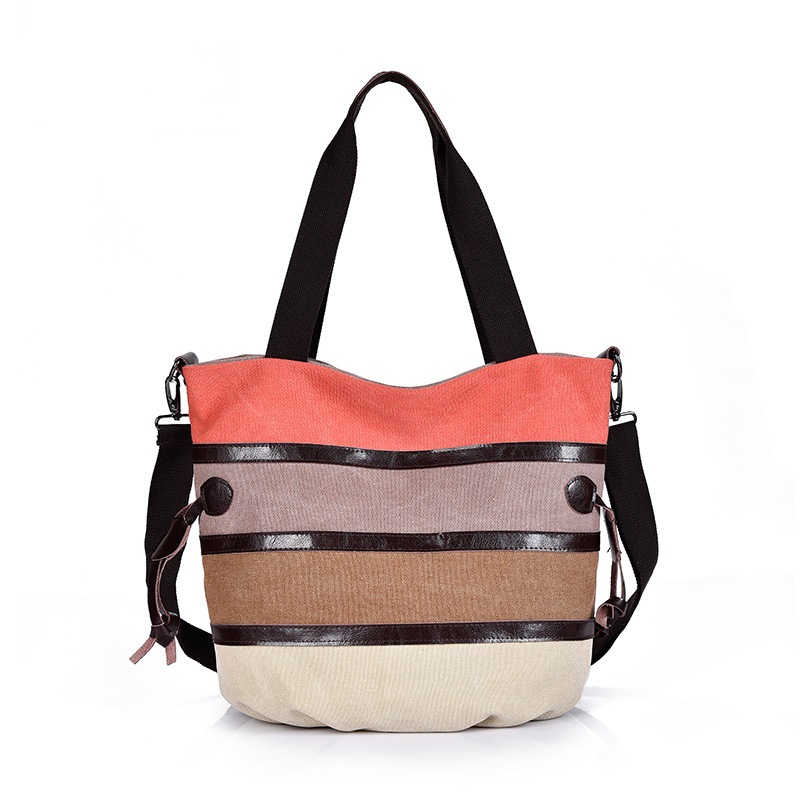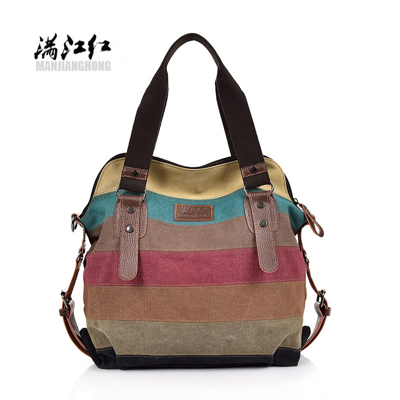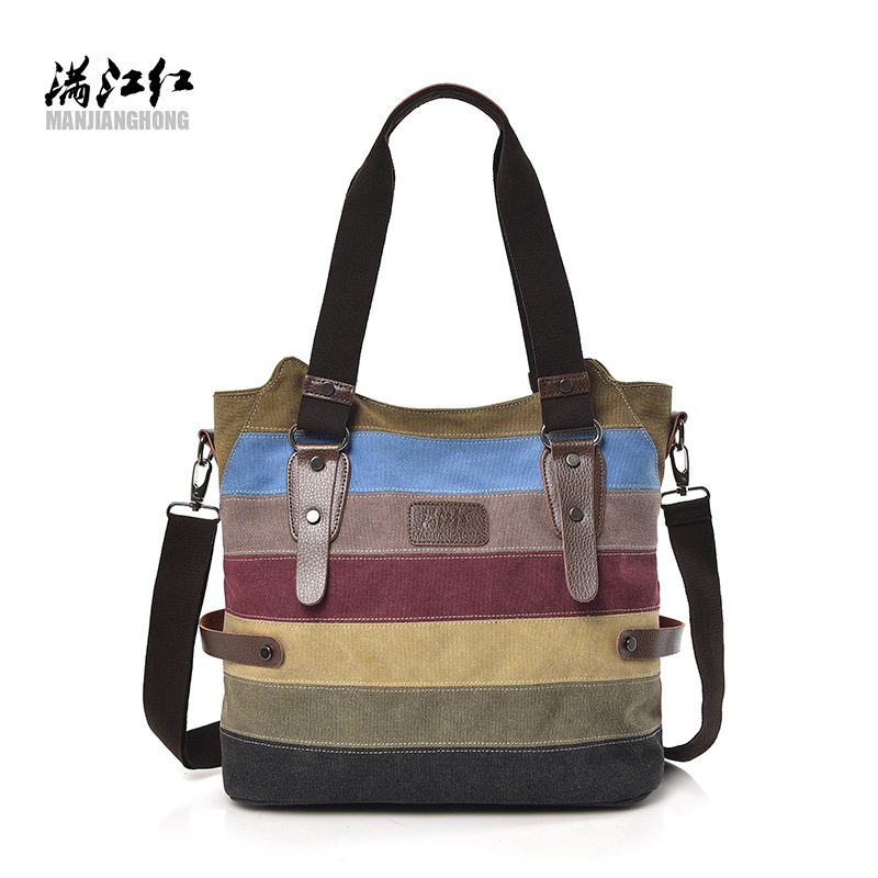 2024년 신상품 유럽 및 미국 레트로 캔버스 핸드백 여성용 레인보우 패치워크 대용량 크로스바디 숄더백