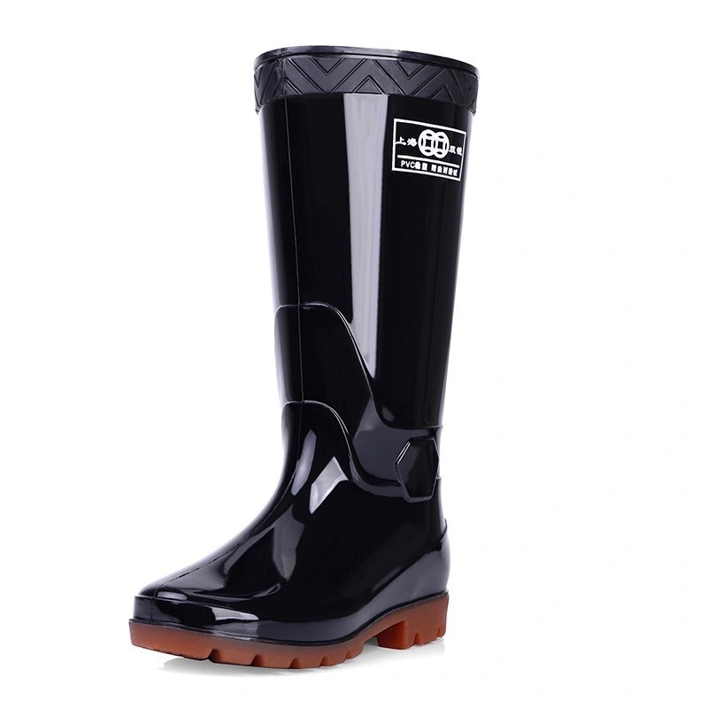 공장 직접 판매 상하이 남성용 더블 머니 레인 부츠 99-2 블랙 더블 천 하이 튜브 PVC 레인 부츠 미끄럼 방지 힘줄 바닥 노동 보호 신발