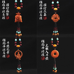 | 高档汽车挂件精雕福袋观音平安扣车出入平安挂饰双象双鱼车内饰品 | |