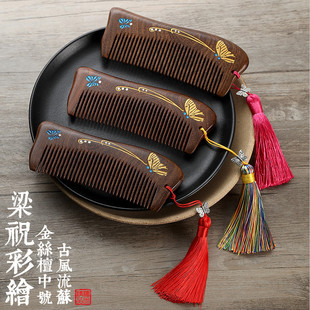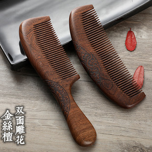 | 天然原木金丝檀木梳大号加厚防静电双面雕花檀木梳子刻字LOGO | |