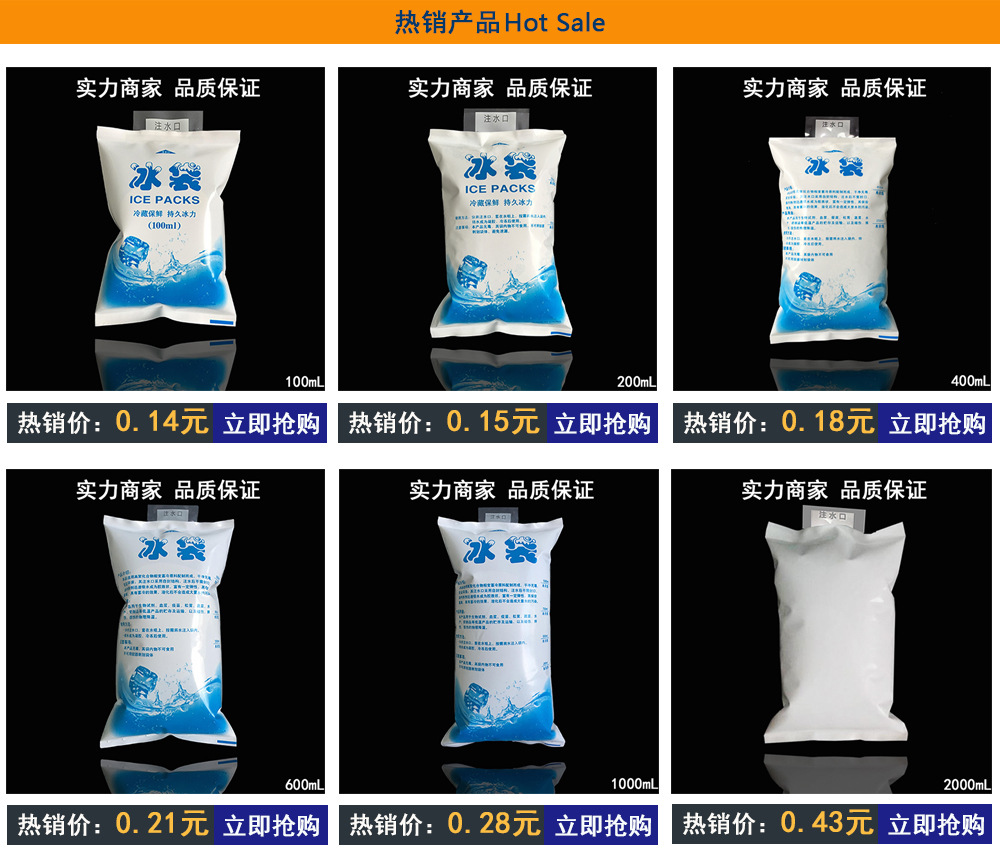 购买100毫升注水冰袋(尺寸:9*13 cm), 请点击此链接 https://detail.1688.com/offer/536626680705.html 购买200毫升注水冰袋(尺寸:10*15 cm), 请点击此链接 https://detail.1688.com/offer/536557697680.html 购买400毫升注水冰袋(尺寸:12*20 cm), 请点击此链接 https://detail.1688.com/offer/37915297527.html 购买600毫升注水冰袋(尺寸:13*23 cm), 请点击此链接 https://detail.1688.com/offer/536624144100.html 购买1000毫升注水冰袋(尺寸:15.5*30 cm), 请点击此链接 https://detail.1688.com/offer/536476667658.html