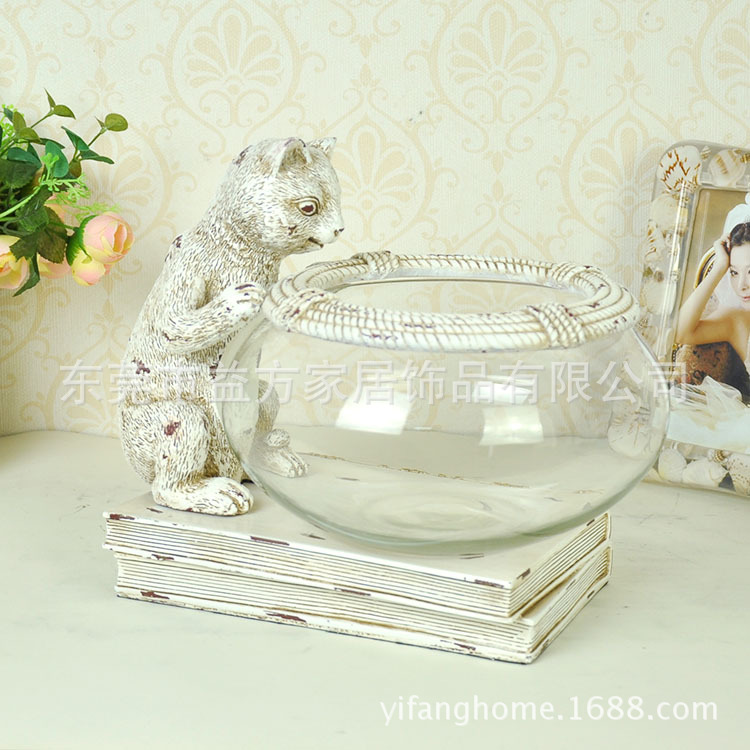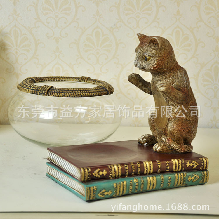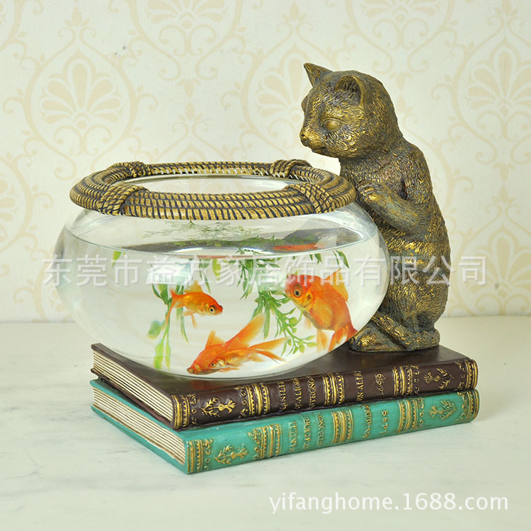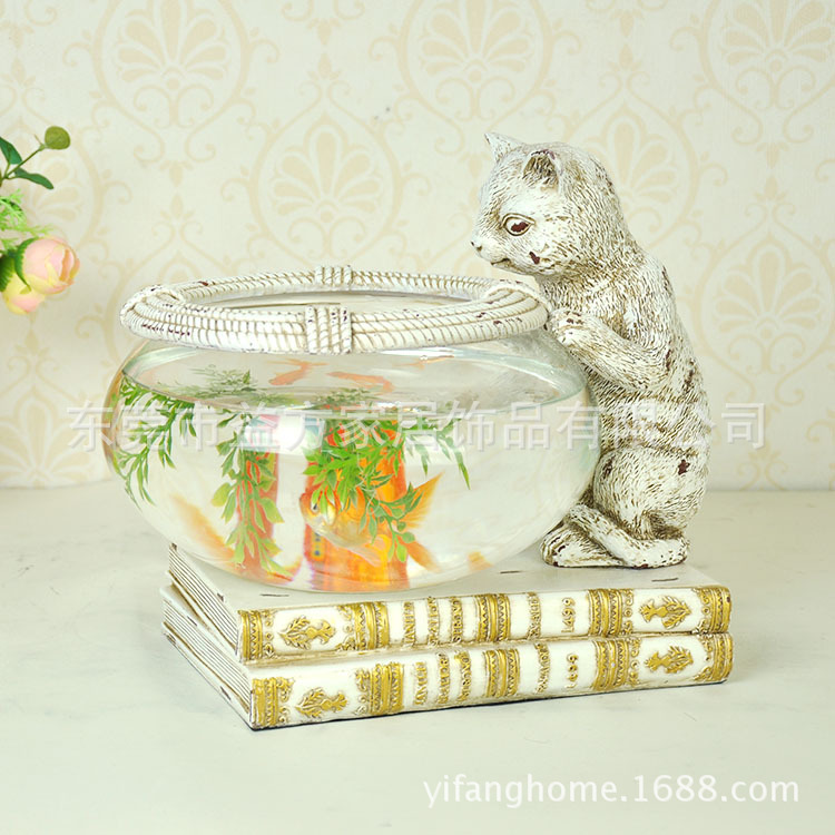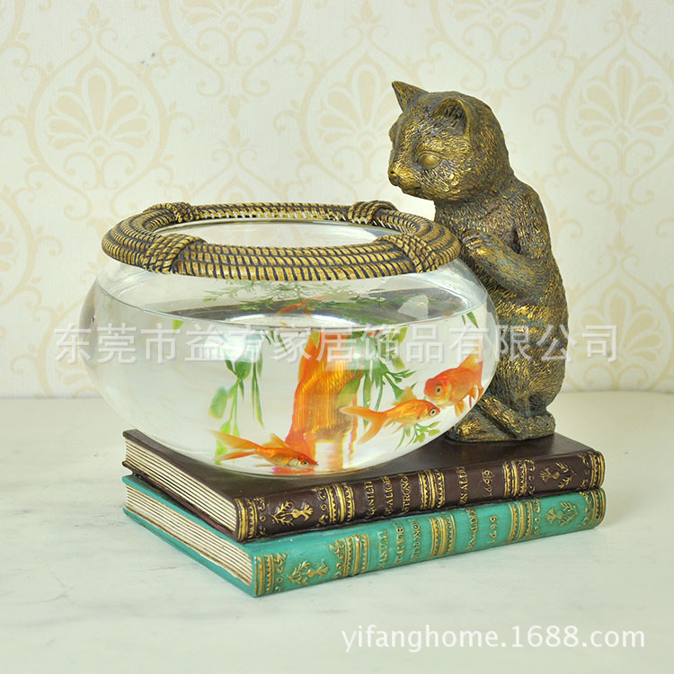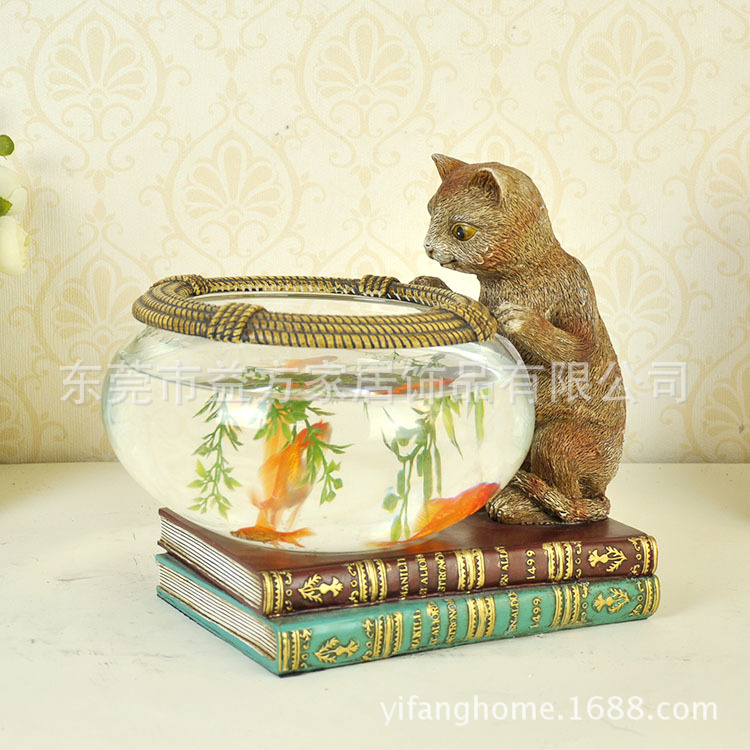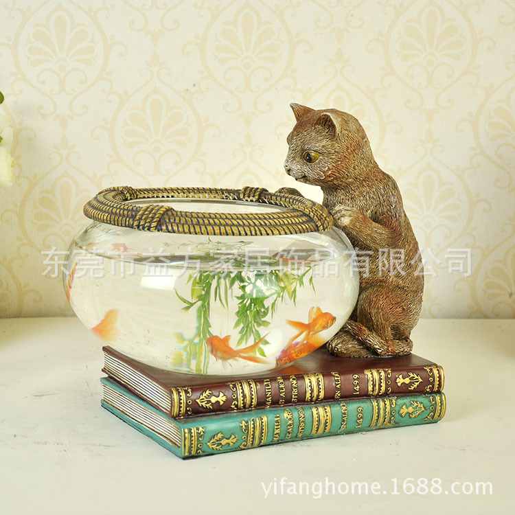 서있는 고양이 대형 어항 거북이 탱크 물 잔디 탱크 거실 연구 장식 새로운 집 장식스토어 가기