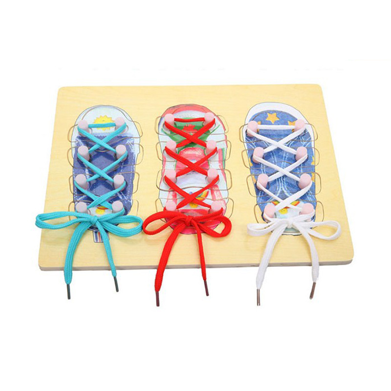 어린이 나무 신발 끈 넥타이 신발 끈 퍼즐 퍼즐 퍼즐 빌딩 블록 장난감 스레딩 문자열 로프 생일 선물스토어 가기