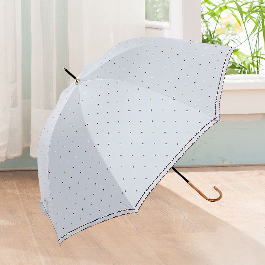 • C208 컬러 접착제 자수 양면 도트 긴 우산 아이보리
