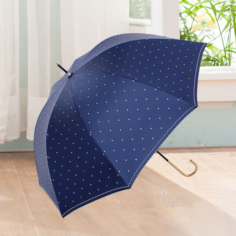 • C208 컬러 접착제 자수 양면 도트 긴 우산 네이비
