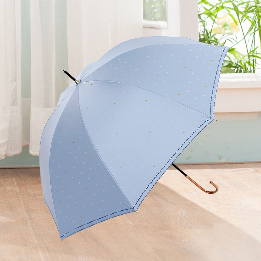 • C208 컬러 접착제 자수 양면 도트 긴 우산 라이트 블루