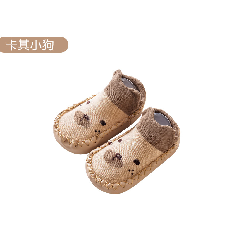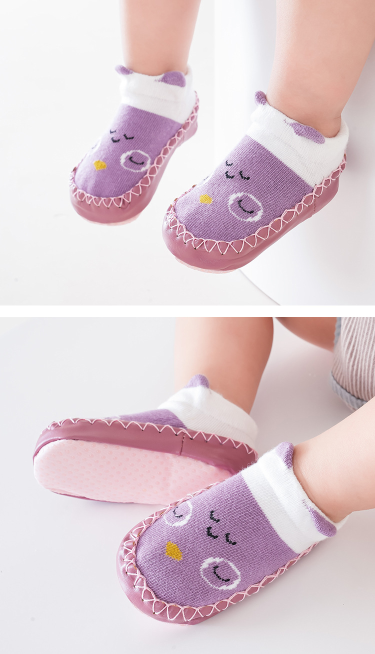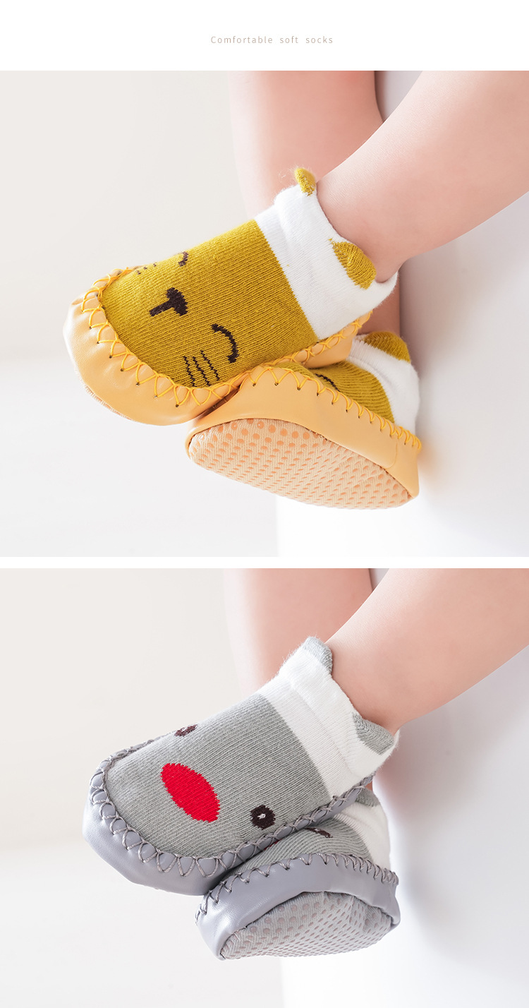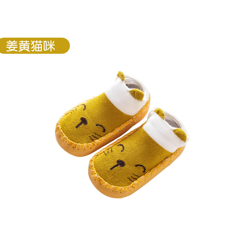 25가지 신상 아동 가을 가죽 밑창 양말 유아 걸음마 신발 양말 아기 걸음마 신발 순면 미끄럼 방지 바닥 양말