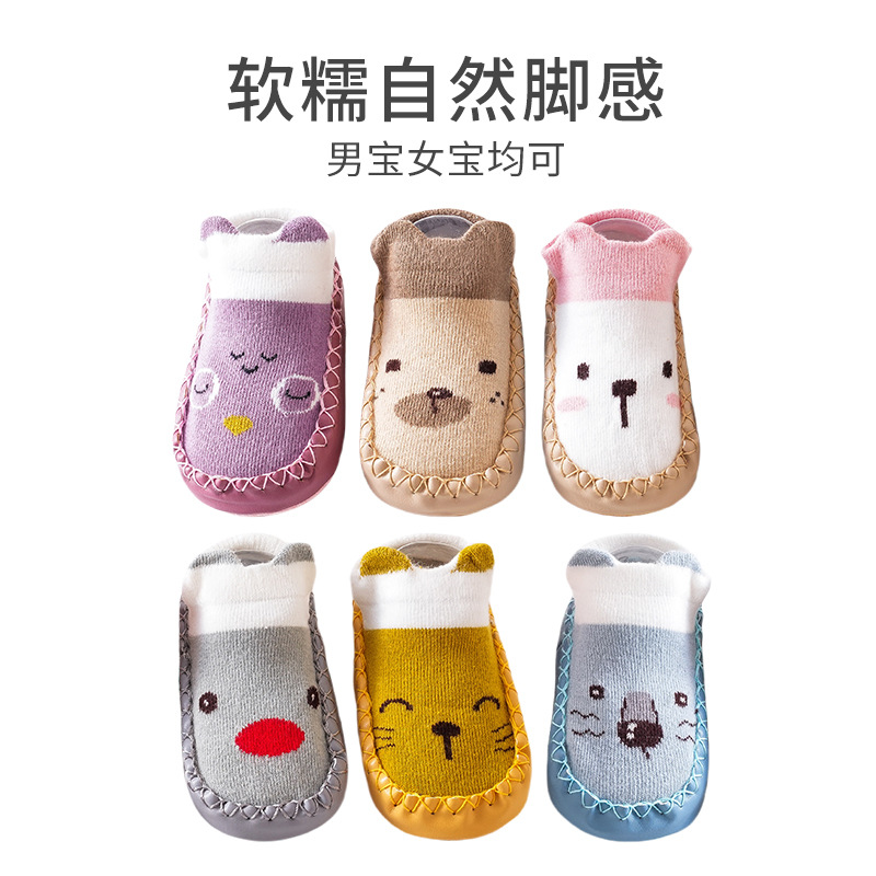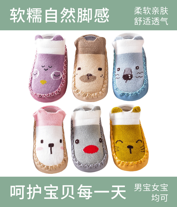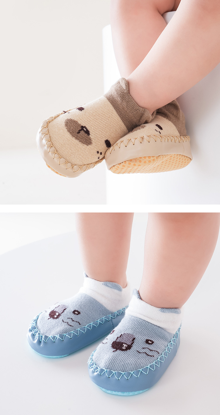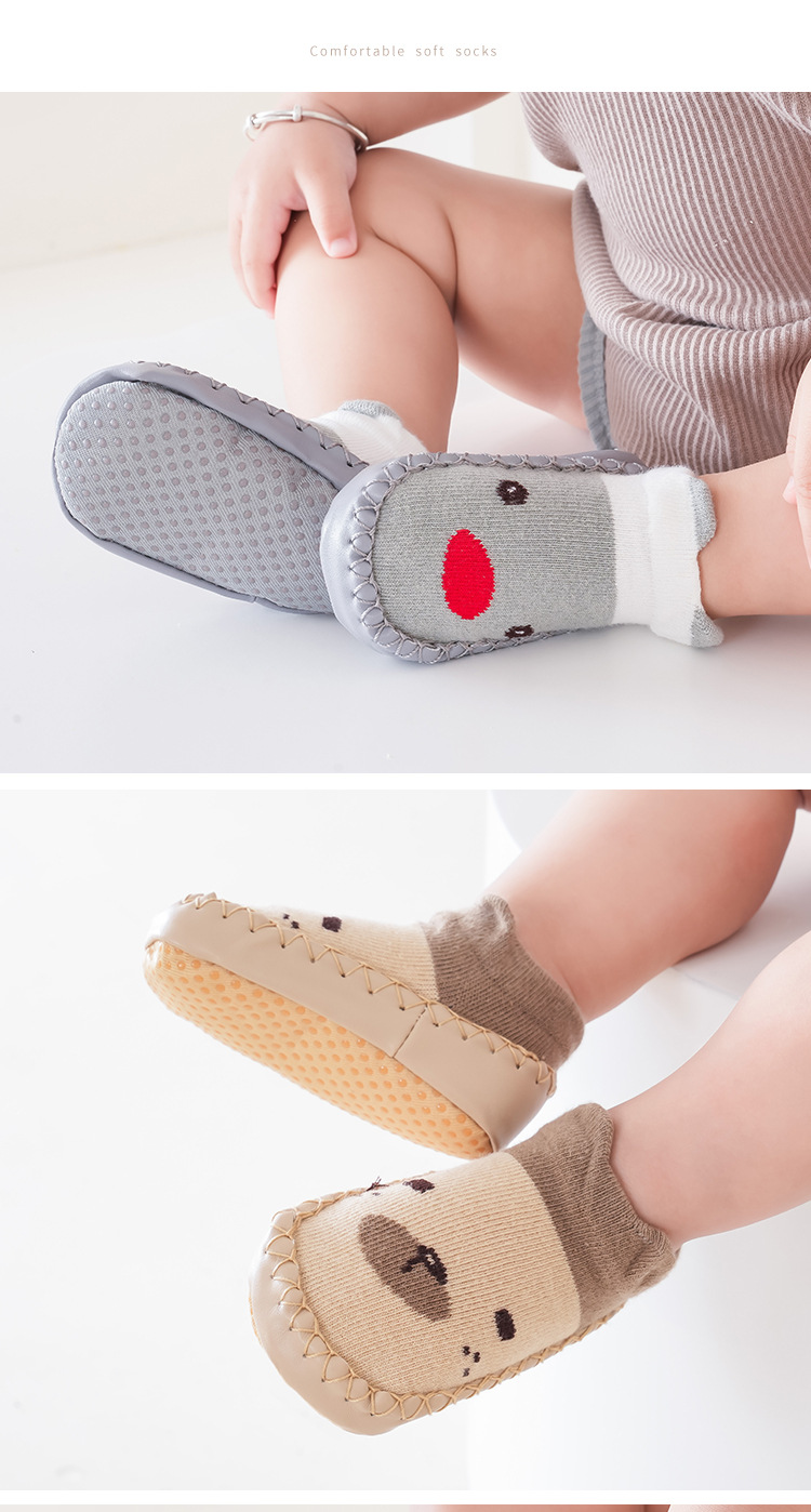 25가지 신상 아동 가을 가죽 밑창 양말 유아 걸음마 신발 양말 아기 걸음마 신발 순면 미끄럼 방지 바닥 양말스토어 가기