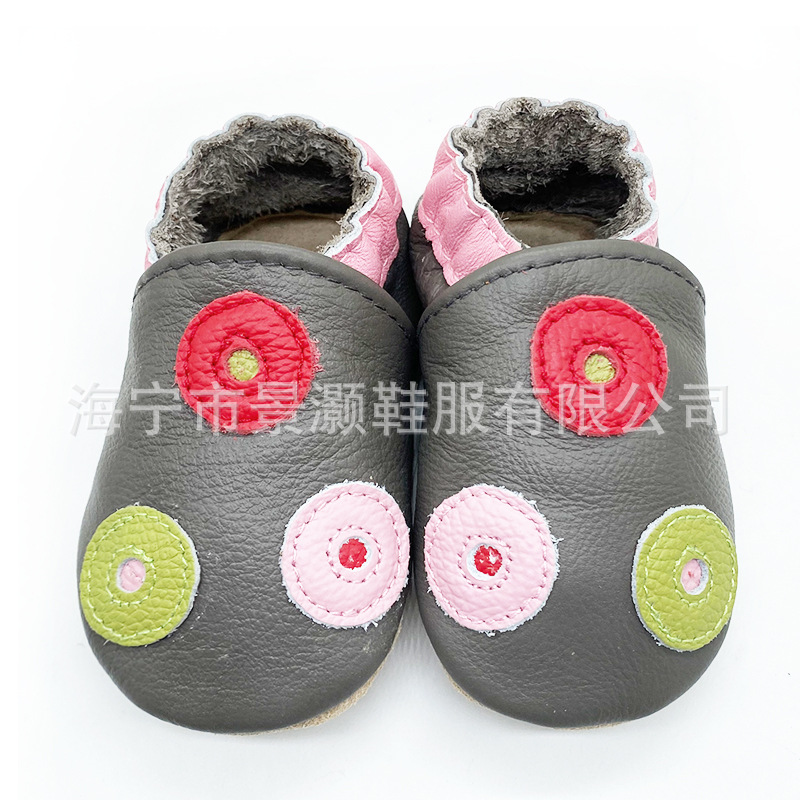 Cowhide 아기 유아 신발 도매 부드러운 바닥 아기 신발 실내 탄성 안티 드롭 아마존