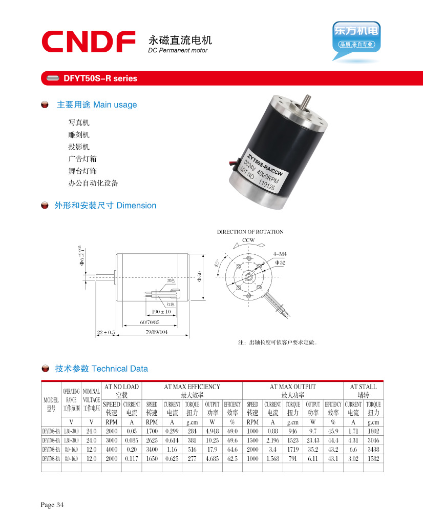 2、永磁直流电机低的堵转转矩是额定转矩的5-6倍,在安装、调试、使用中应尽量避免堵转现象。