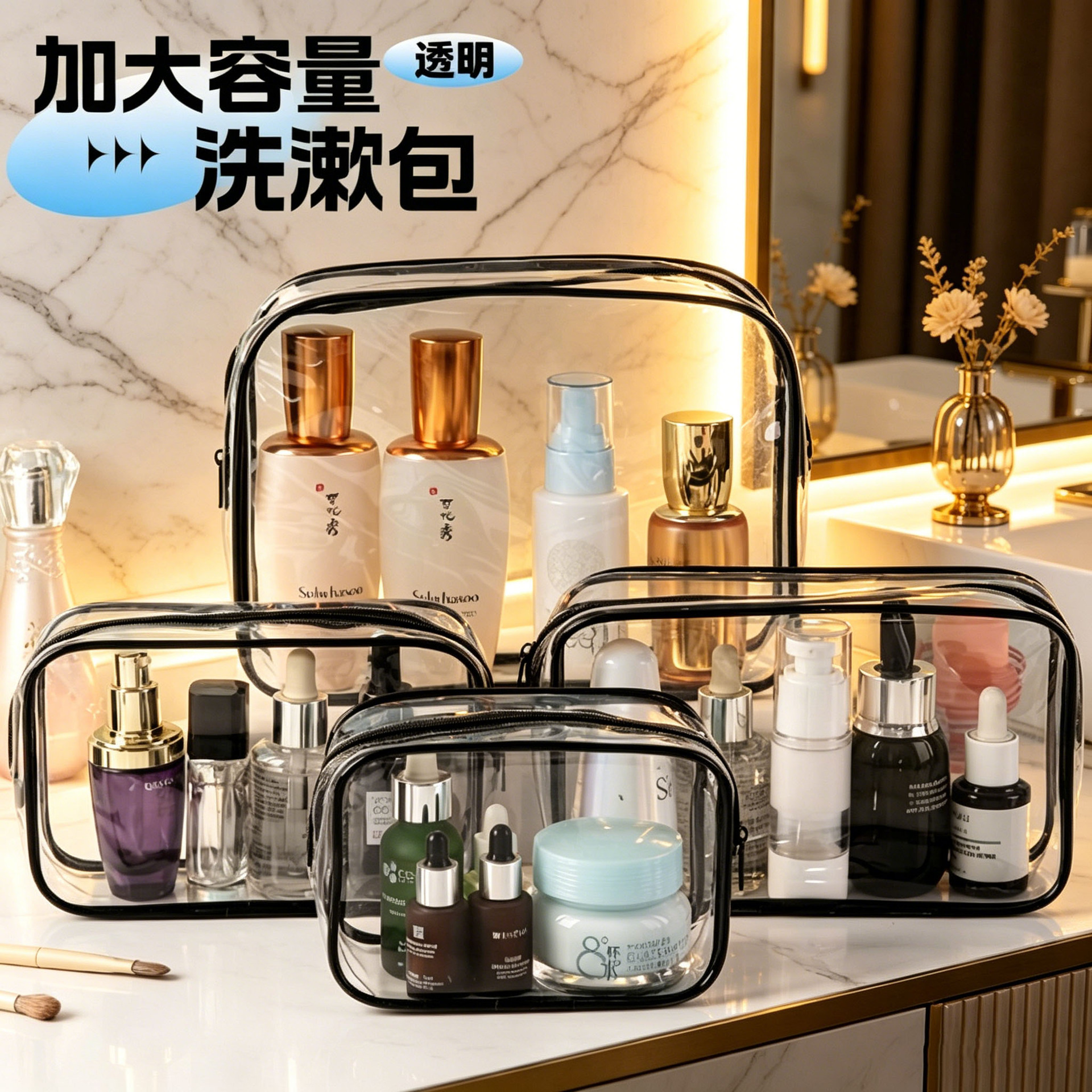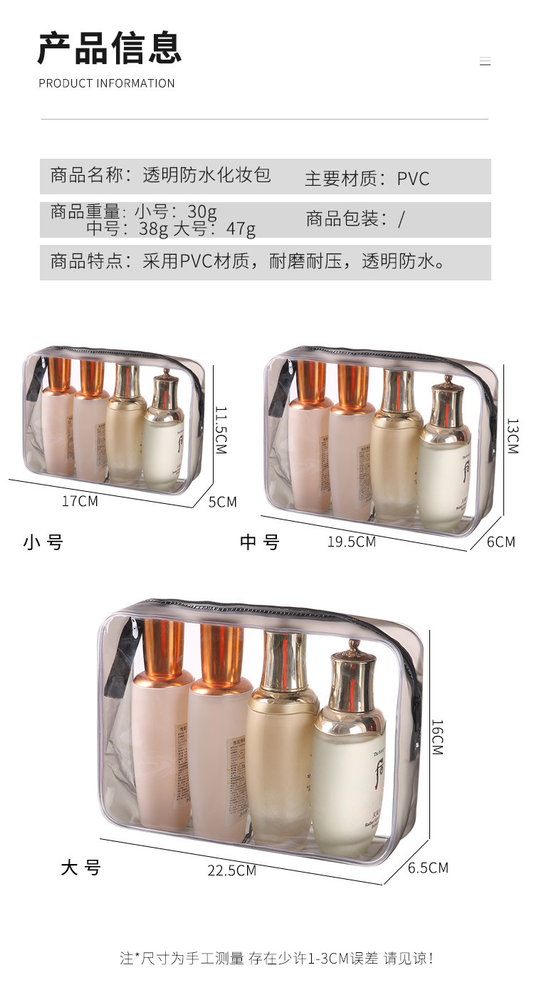 여행용 투명 세면도구 가방 PVC 두꺼운 화장품 가방 가정용 스킨케어 세면도구 가방 간편한 수납 가방스토어 가기