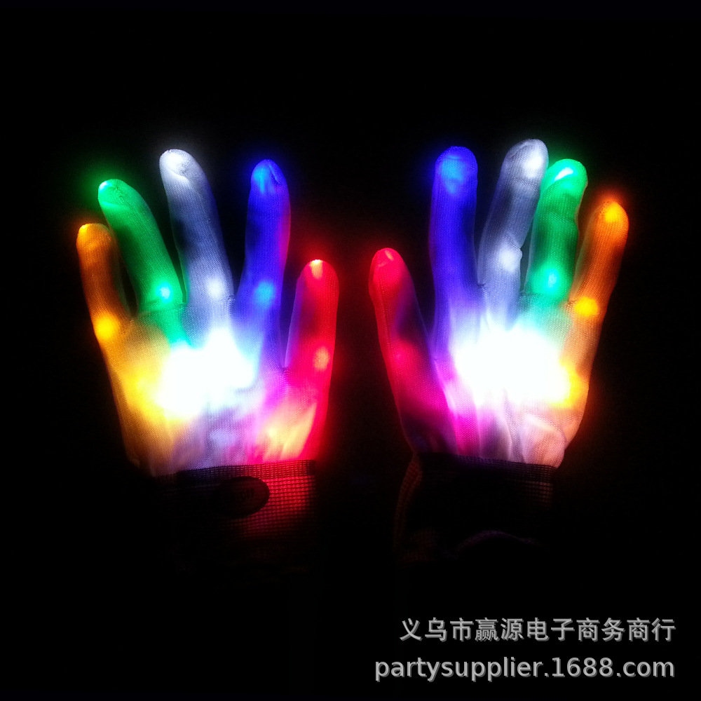 크로스-보더 재고 다채로운 플래시 장갑 무지개 빛나는 장갑 LED 장갑 형광 댄스 공연 소품스토어 가기