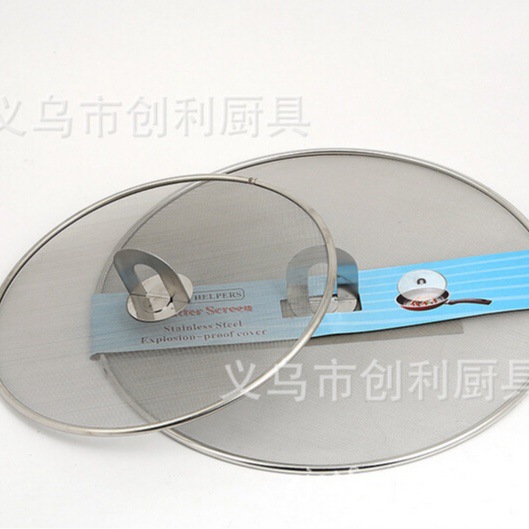 防溅网直径32cm,起到爆油防溅作用,热锅煎鱼或是不想密盖炖煮时,尤其适用。 适用于容纳大多数直径达30cm的锅具。 如果是玻璃盖,烹饪有些菜式,水分重新回流到锅内,影响菜肴味道,所以需要细网透气。 值得注意的是,小部分油还是可能会透过细网溅出来 ,毕竟是细孔,并不是全密封的