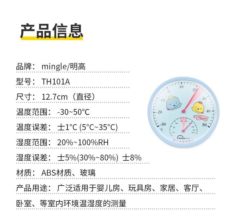 Minggao TH101A 아기 실내 온도 및 습도 미터 실내 온도 및 습도 미터 라운드