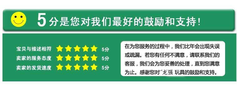 其他:我们做的不是精品、不是工艺品、不是艺术品、不是电器,是普通的玩具,完美主义者或者对产品要求严格者,请华丽转身,优雅绕道。