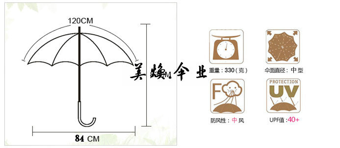 【规格】:伞面半径60CM/8骨,折合总长84CM,直径约83公分