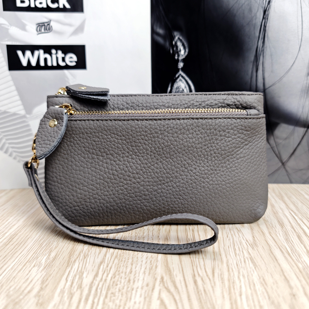 크로스보더 천연가죽 동전지갑, 1등급 소가죽 클러치백, 손목가방, 소형 지갑, 여성용 핸드폰 가방, 자수스토어 가기