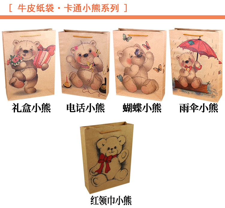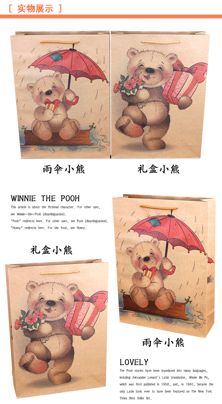 만화 인쇄 곰 선물 가방 오픈 크래프트 종이 포장 가방 선물 상자 의류 가방 어린이 날 핸드백 재고 있음스토어 가기