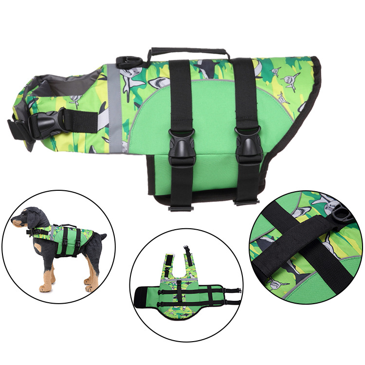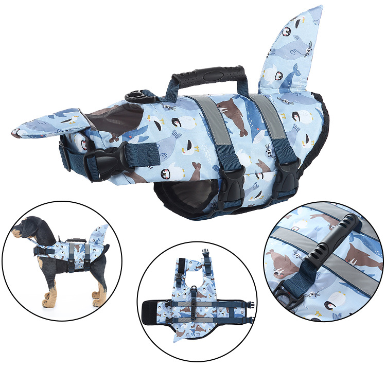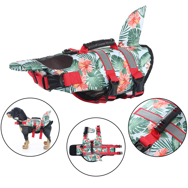 아마존 봄과 여름 새로운 가슴과 등 수영 애완 동물 용품 국경 반사 스트립 안전 부력 생명을 구하는 개 옷