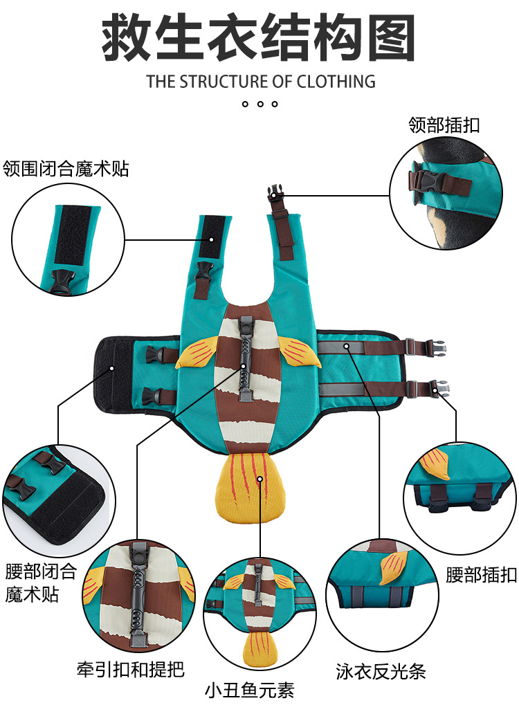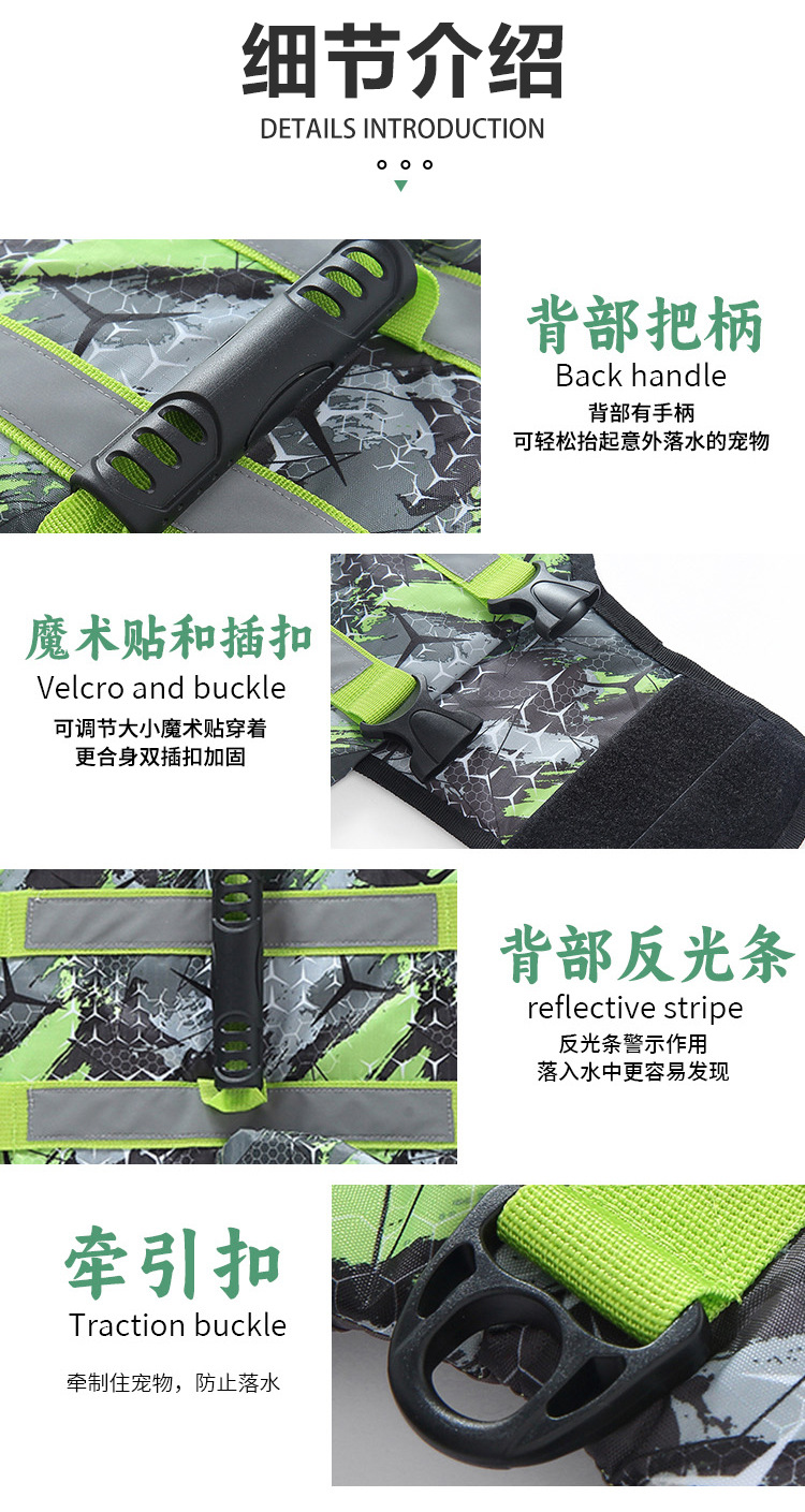 아마존 봄과 여름 새로운 가슴과 등 수영 애완 동물 용품 국경 반사 스트립 안전 부력 생명을 구하는 개 옷스토어 가기