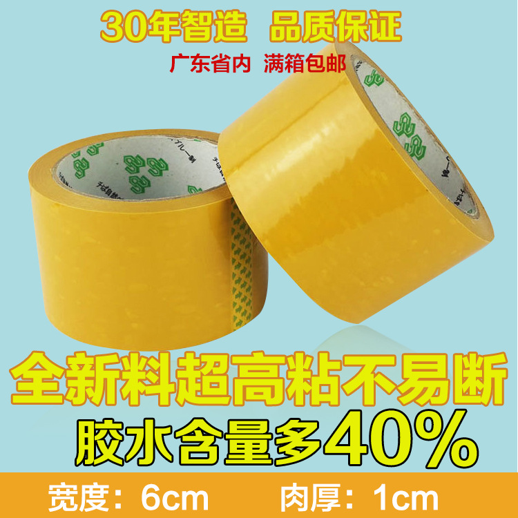 胶带厂家供应6cm宽1cm厚足卷足量高粘度封口胶黄色封箱胶带纸批发