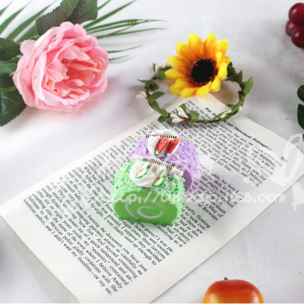 크리 에이 티브 새로운 작은 스위스 롤 PU 냉장고 스티커 스위스 롤 장식품 거실 조기 교육 사진 시뮬레이션 공예