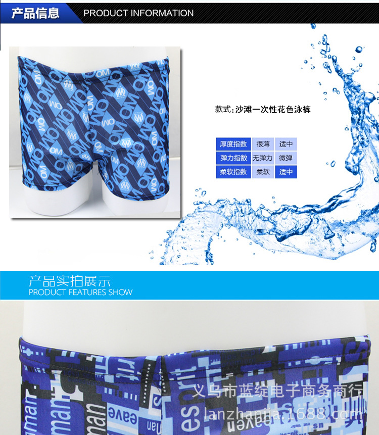 [颜色]:实物拍摄,展示的图片是随机拍的几条花色。这款一次性的泳裤,有20多个花色,混色搭配。