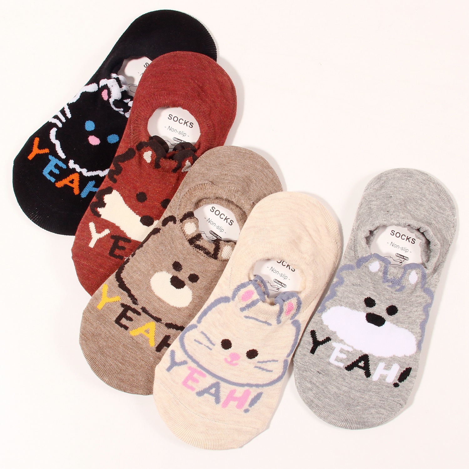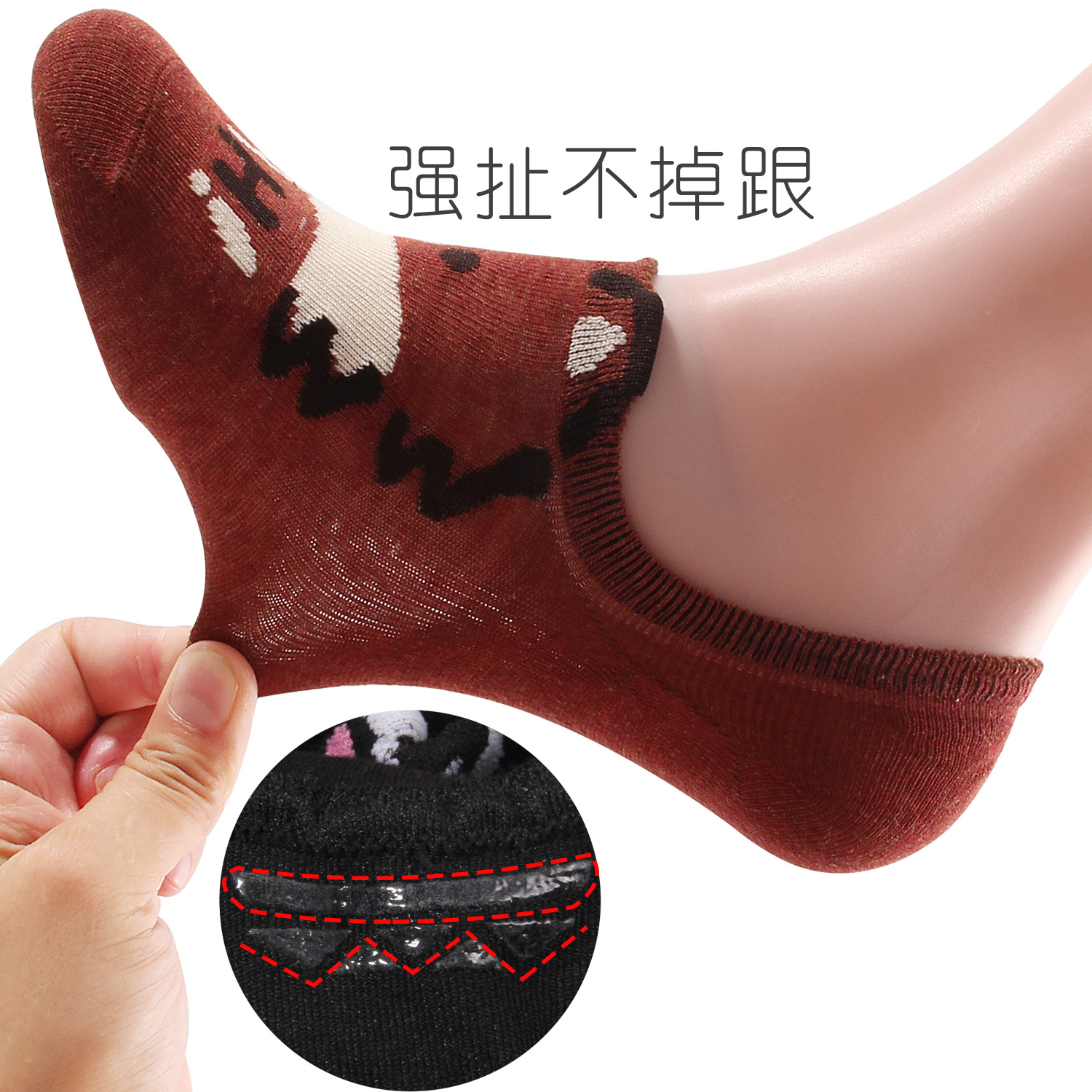 여름 신상 얕은 굽 여성용 보트 양말, 실리콘 미끄럼 방지, 떨어지지 않는 귀여운 만화 캐릭터 여성용 투명 양말, 입체 여성용 양말