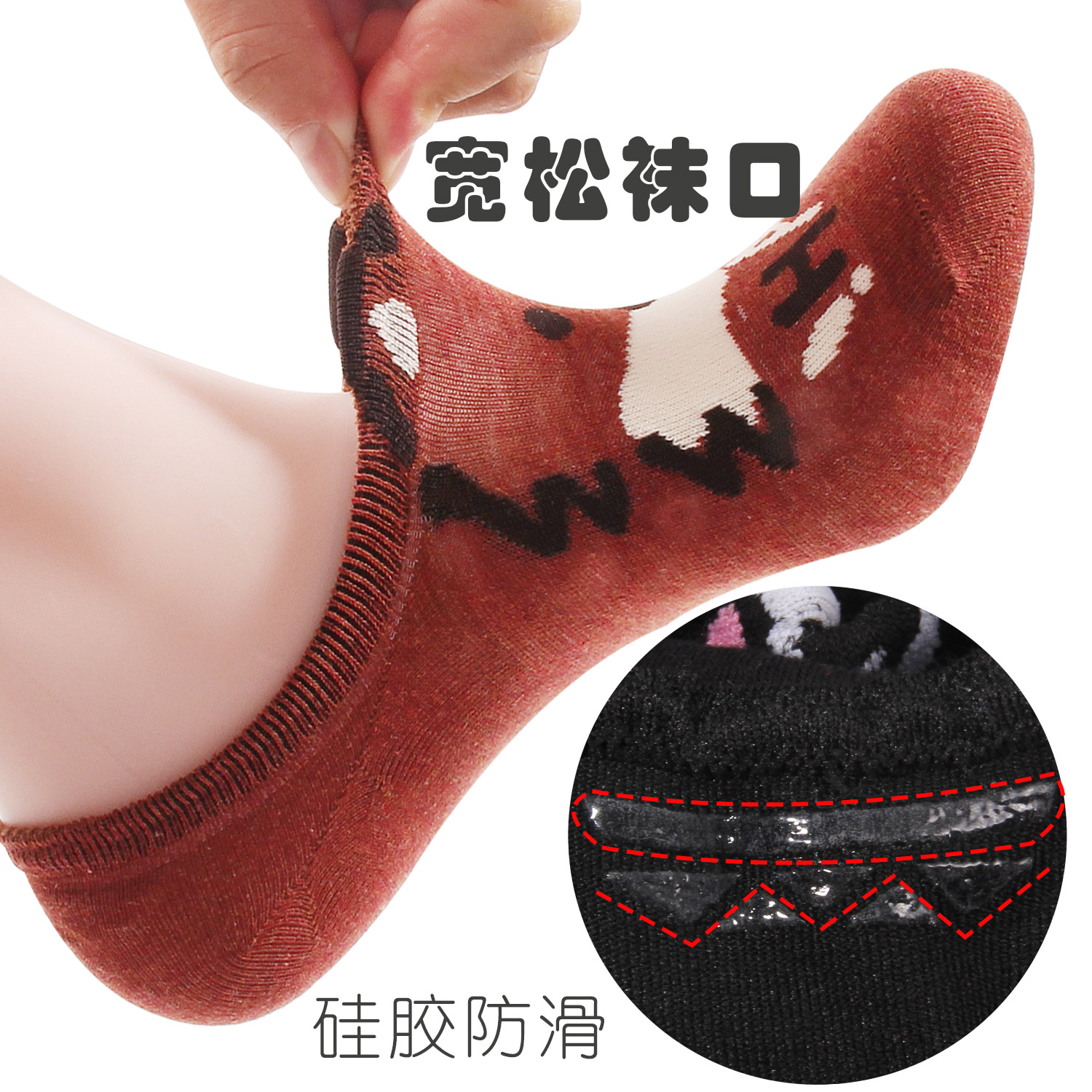 여름 신상 얕은 굽 여성용 보트 양말, 실리콘 미끄럼 방지, 떨어지지 않는 귀여운 만화 캐릭터 여성용 투명 양말, 입체 여성용 양말스토어 가기