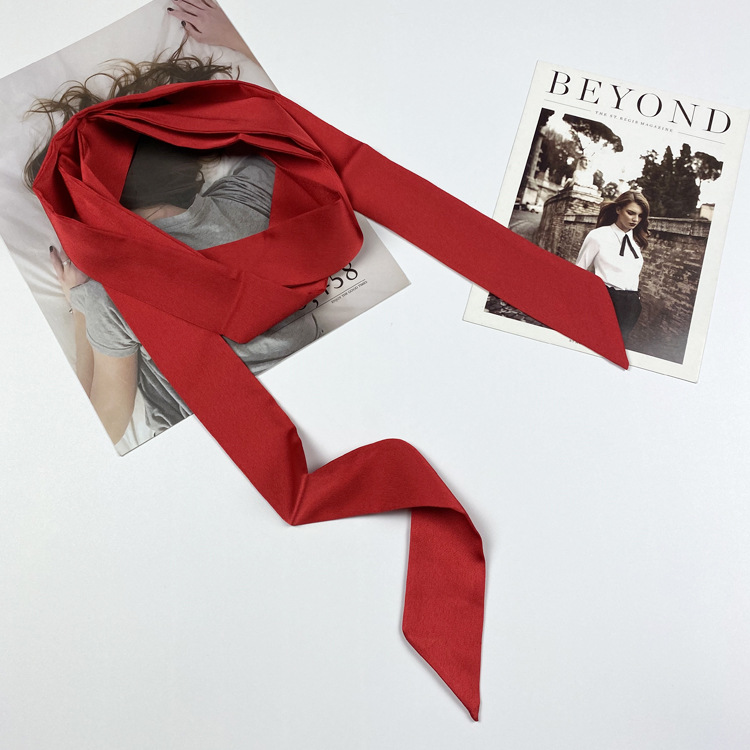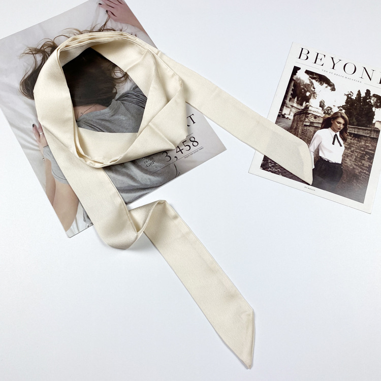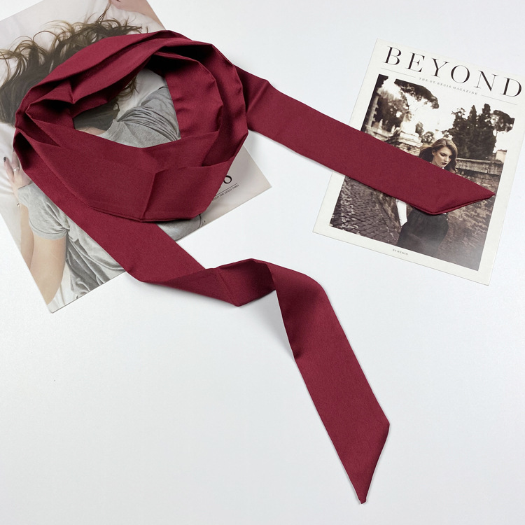 단색 실크 스카프 여성용 긴 얇은 좁은 스카프 한국 긴 작은 스카프 리본 모든 일치 장식 리본 넥타이 벨트