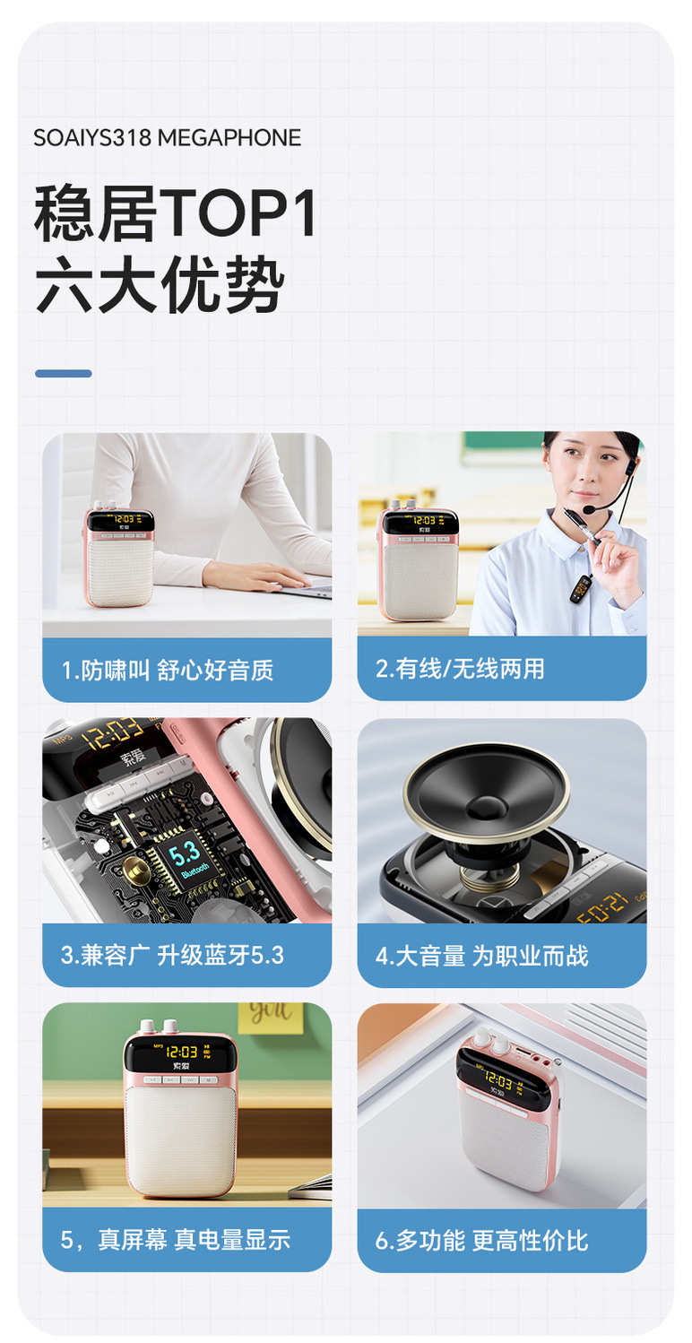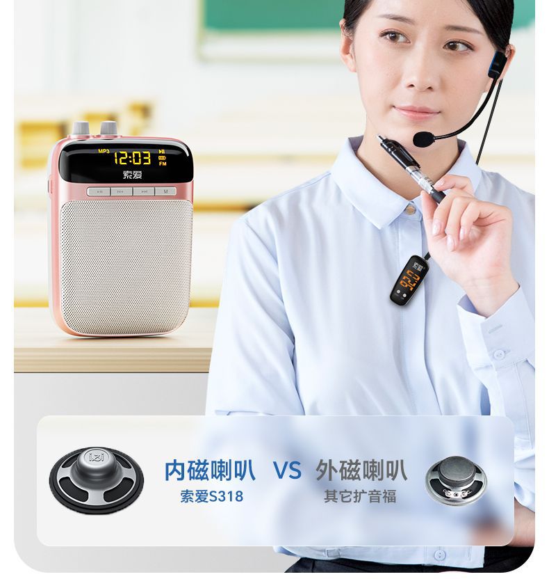 소에이 S518 꿀벌 확성기 교사용 무선 이어 마이크 강의용 가이드 스피커