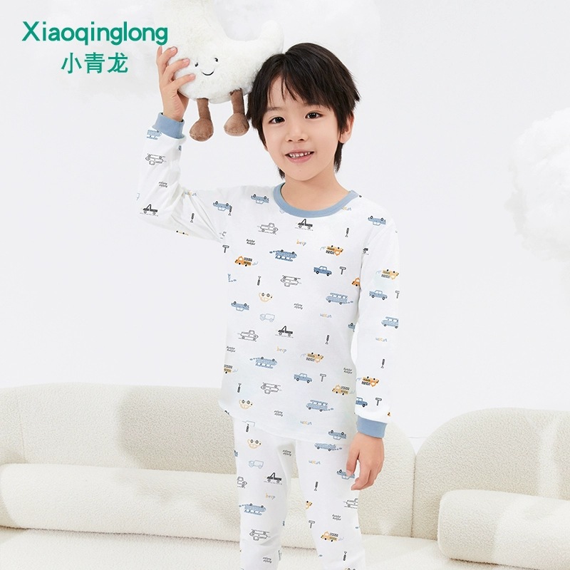 리틀 칭롱 어린이 속옷 면화 소년과 소녀 가을 옷과 바지 크루 넥 세트 봄과 가을 중 어린이 큰 아이들 7075스토어 가기