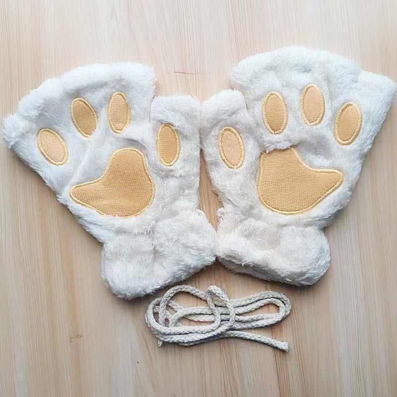 고양이의 발톱 장갑 겨울 귀여운 만화 고양이 소녀의 장갑 두꺼운 푹신한 곰의 발 반 손가락 장갑