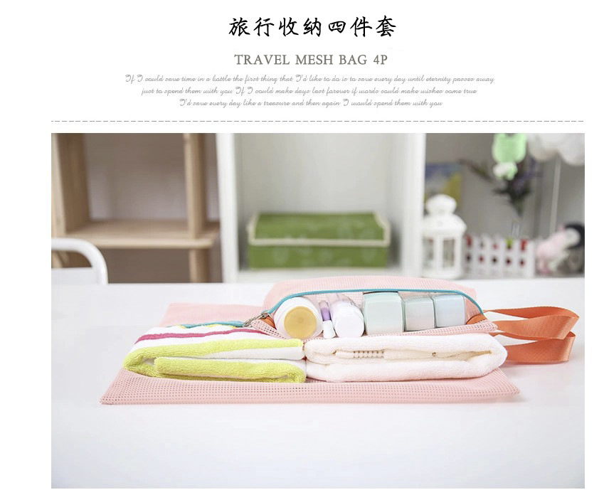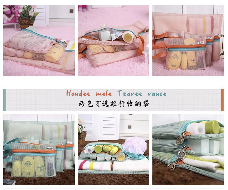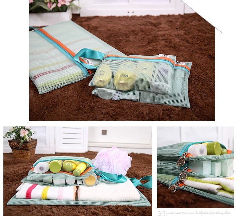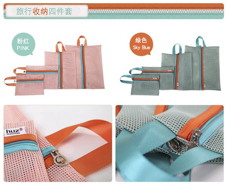크로스보더 메쉬 수납가방 4종세트, 메쉬 세면도구, 화장품가방, 신발가방 수납, 여행수납 정리가방스토어 가기