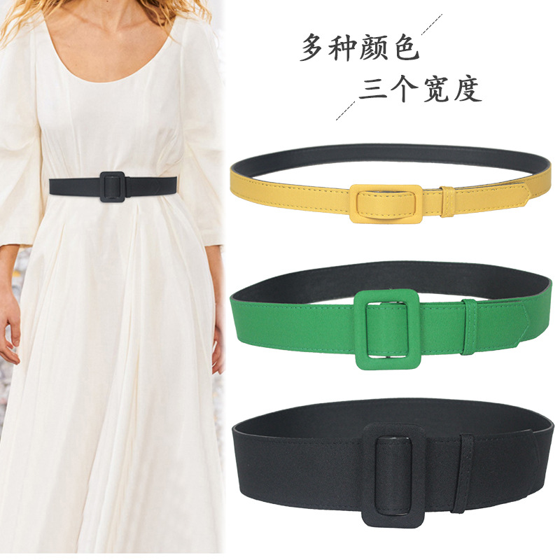 크로스 보더 도매 심플 모든 매치 단색 벨트 여성 캐주얼 허리 커버 장식 패션 가방 천 벨트 스퀘어 버클 천 벨트