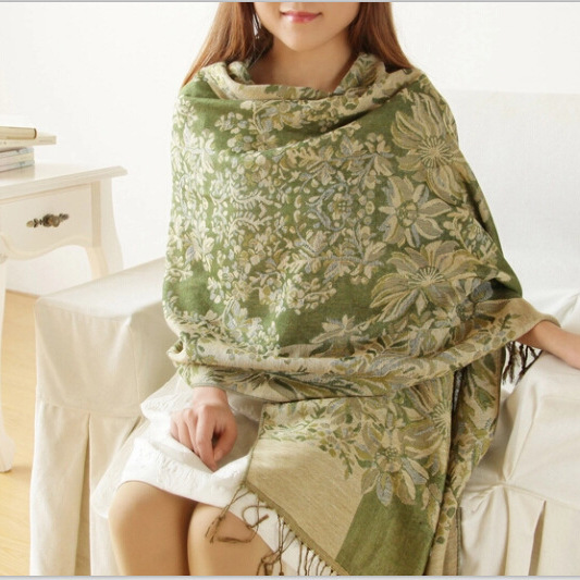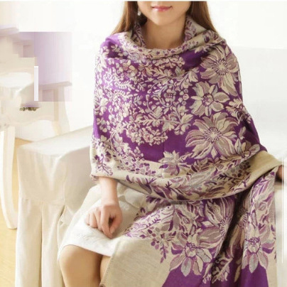 印花围巾葡萄花女士民族风提花空调围巾加厚保暖围巾空调披肩批发