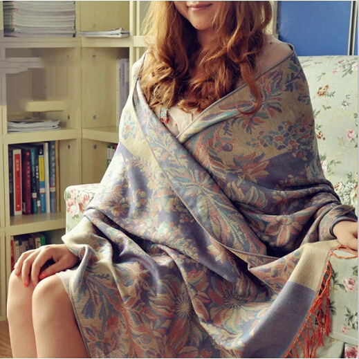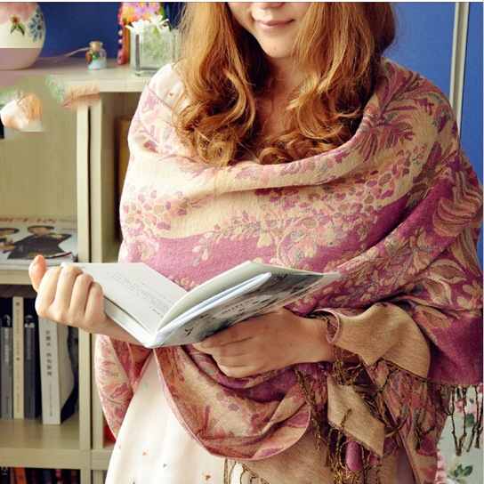 인쇄 스카프 포도 꽃 레이디 에스닉 자카드 에어컨 스카프 두꺼운 따뜻한 스카프 에어컨 숄 도매스토어 가기