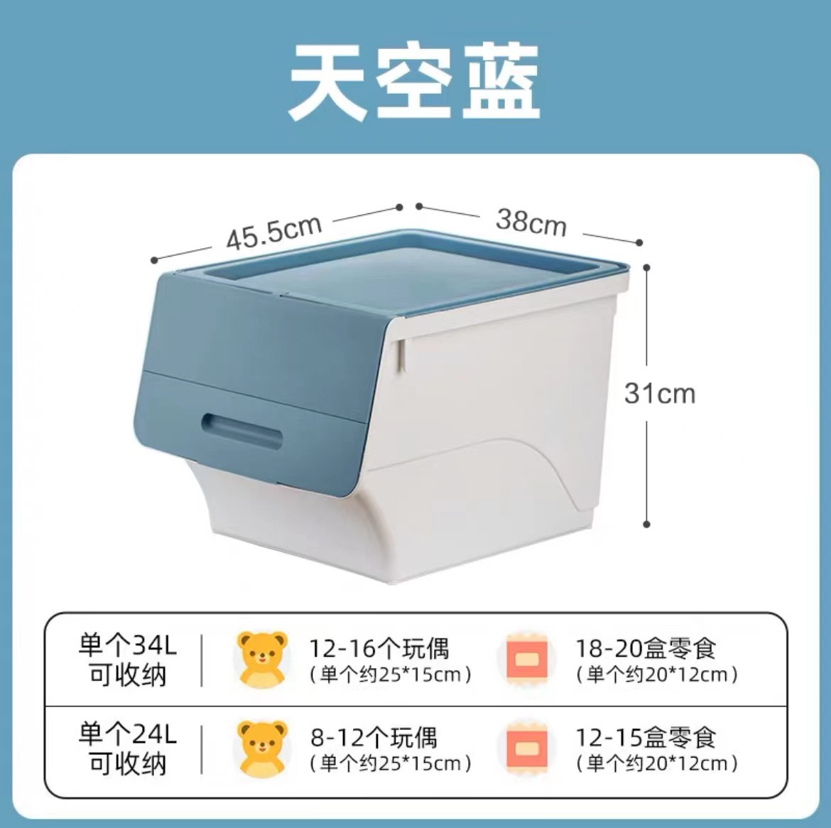 차화 사선형 수납함, 의류 정리함, 어린이 장난감 보관함, 34L 대용량 수납함