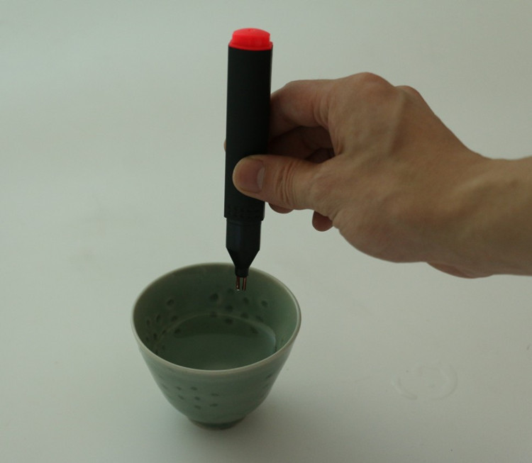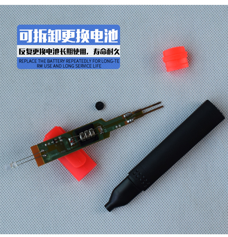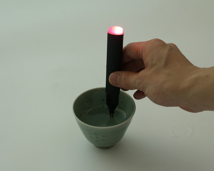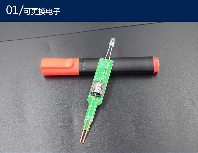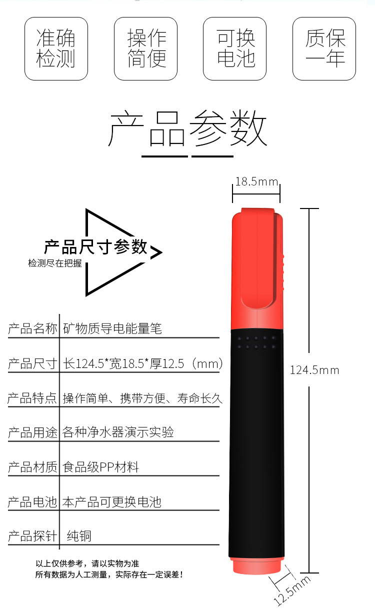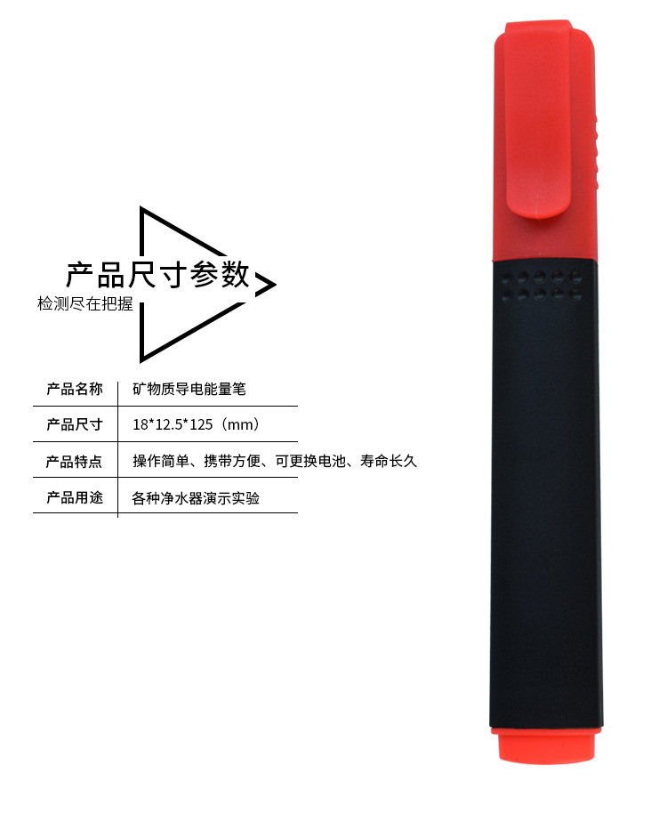 用法:倒半杯水,将能量笔打开盖子,将笔尖放入水中,如果亮灯表示水中含有矿物质,如果不亮灯,表示水中不含矿物质。