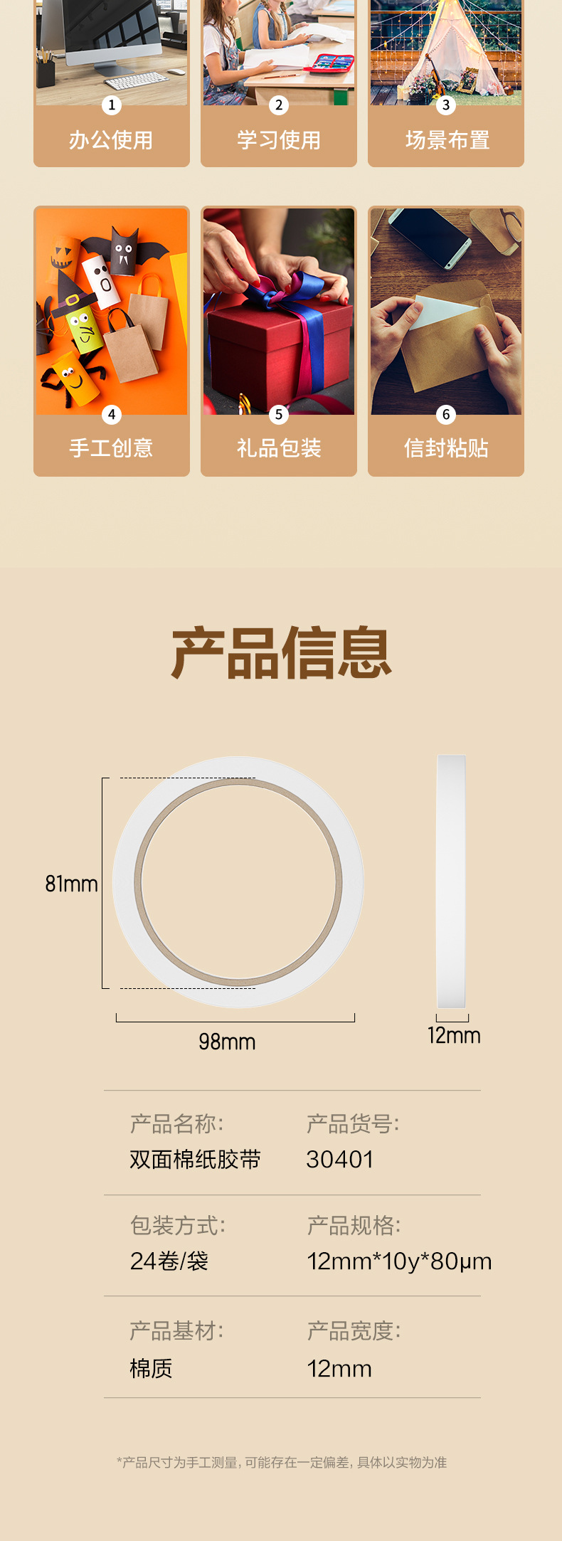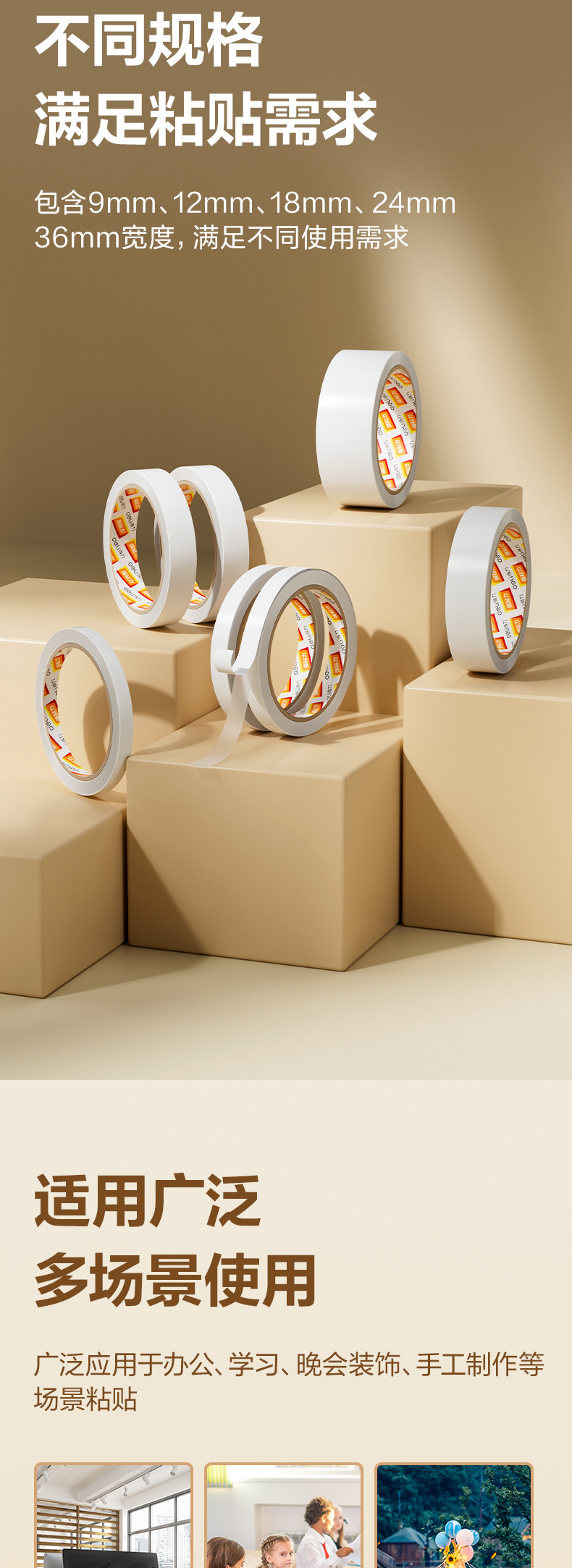 델리 양면 테이프 30401 면 테이프 12mm 폭 양면 접착 테이프 사무실 학생 손 찢기 테이프스토어 가기