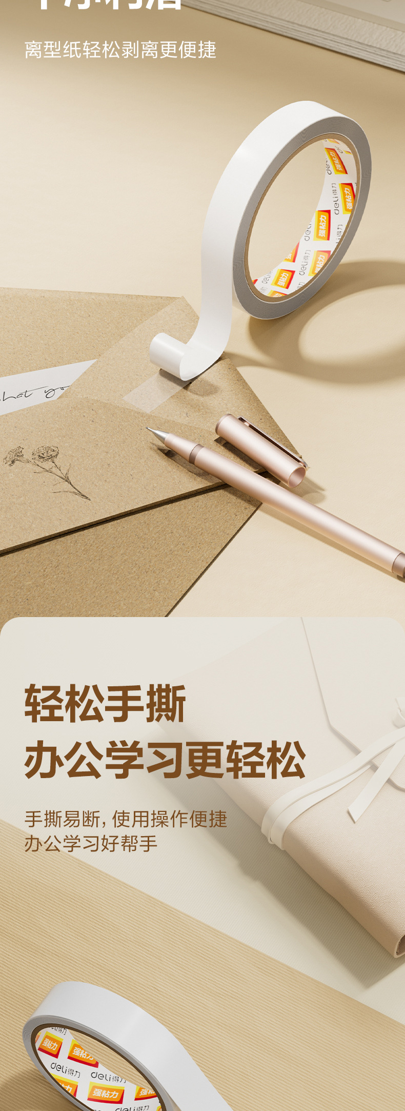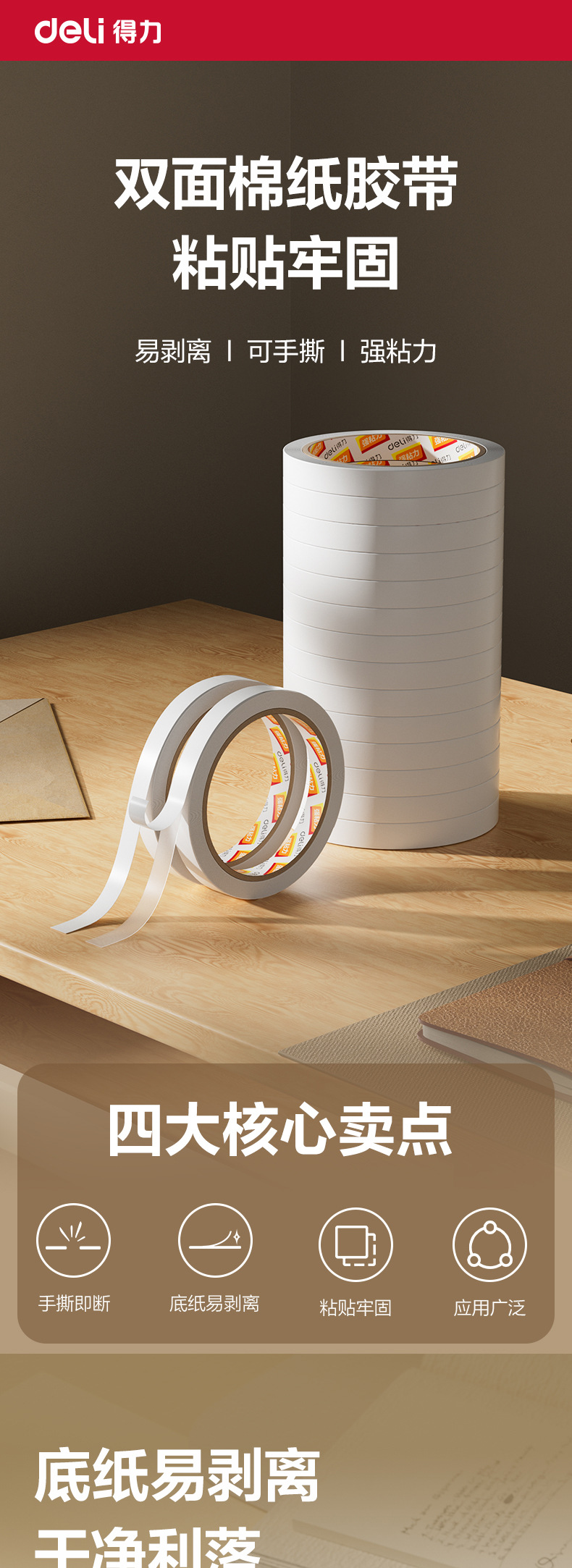 델리 양면 테이프 30401 면 테이프 12mm 폭 양면 접착 테이프 사무실 학생 손 찢기 테이프