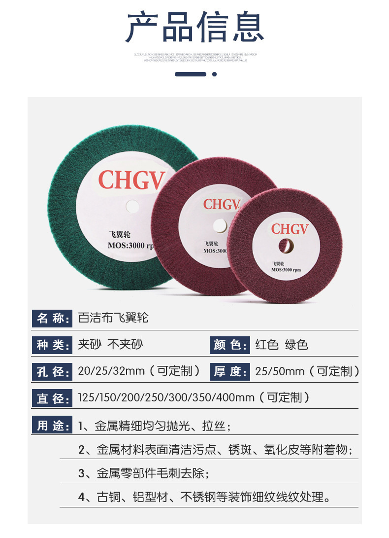 금속 스테인레스 스틸 와이어 드로잉 플라잉 윙 휠 연마 휠 나일론 휠 담요 빨간색과 녹색 스크러빙 천 휠 와이어 드로잉 휠스토어 가기