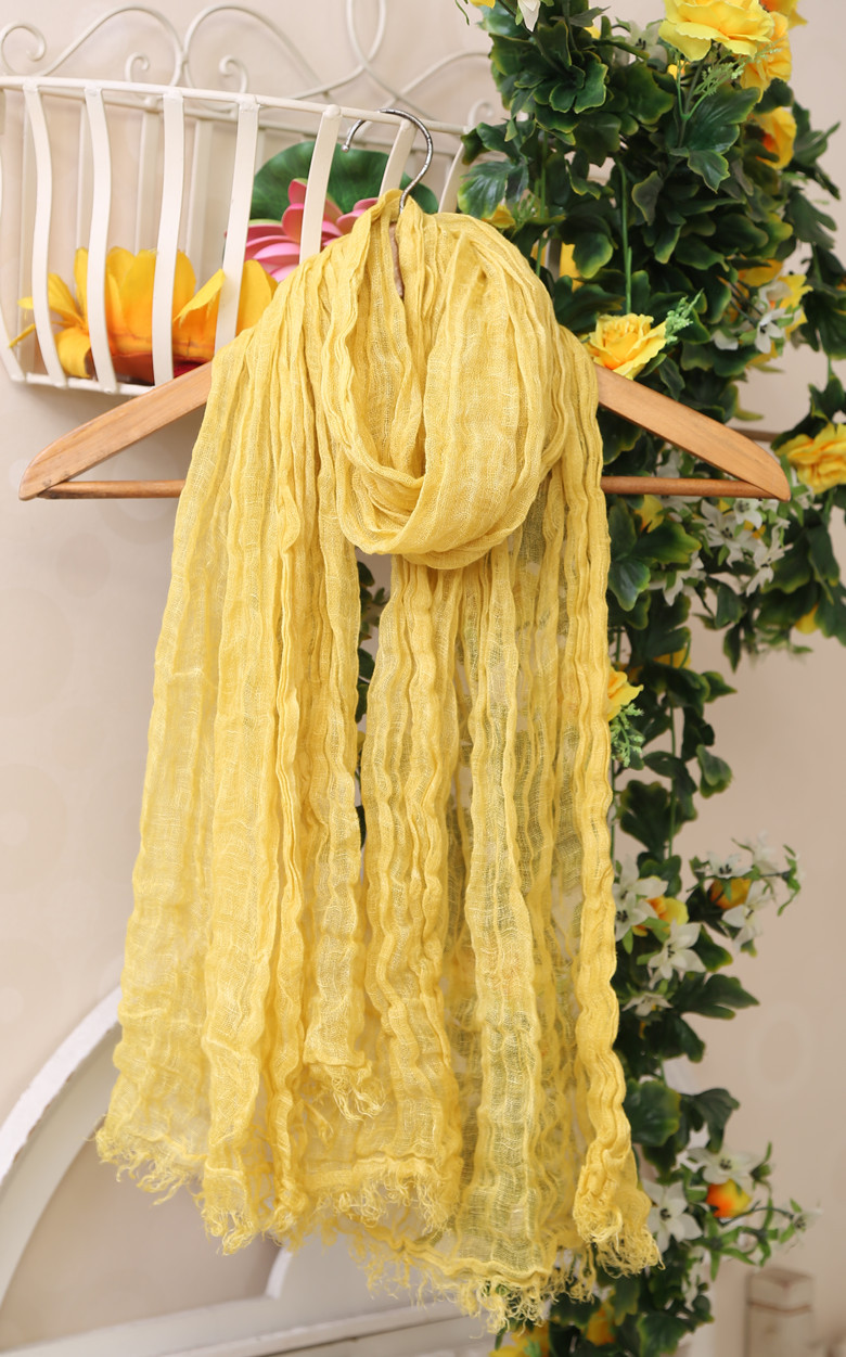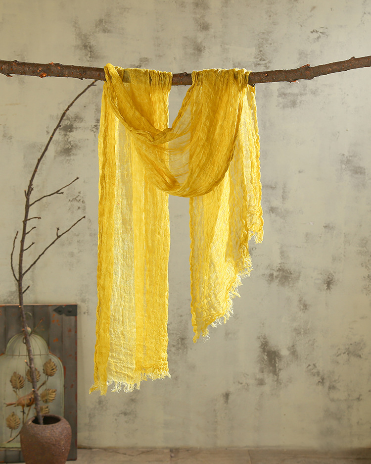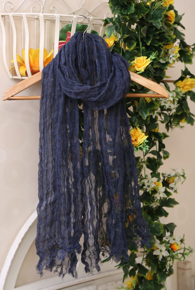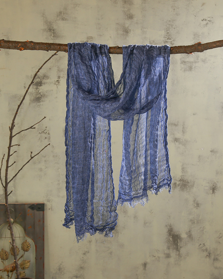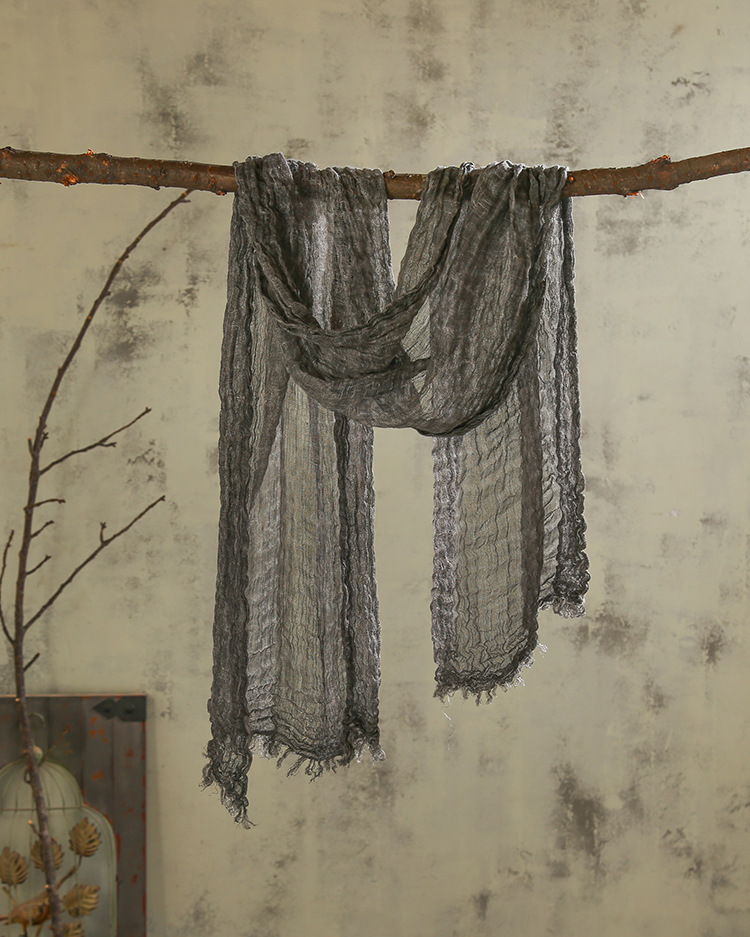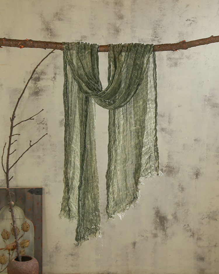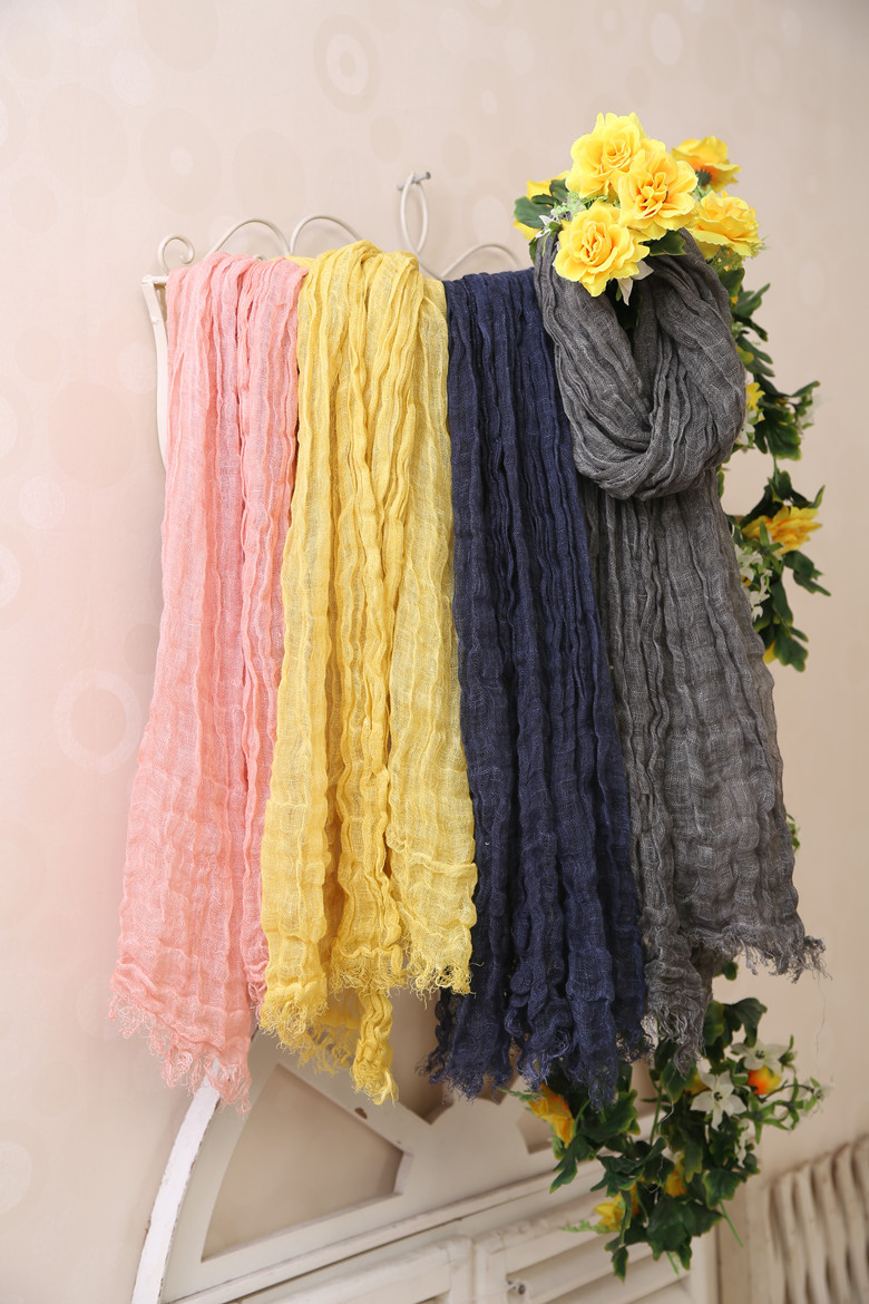 일본 린넨 단색 자연 질감 주름 스카프 빈티지 린넨 예술적 스카프 가을과 겨울 얇은 남성